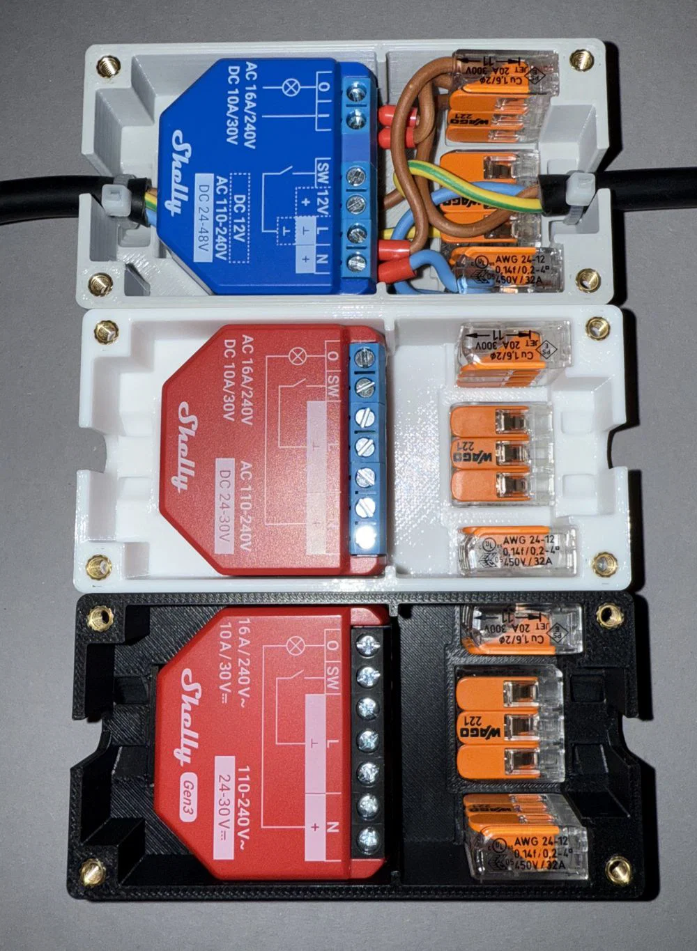 Mẫu vỏ bảo vệ thiết kế dễ in dành cho các dòng Shelly Plus (thế hệ 2 và 3). Sản phẩm có khoang chứa rộng rãi cho WAGO 221, giúp cố định cáp gọn gàng và dễ dàng thao tác với nút reset cũng như đèn LED.