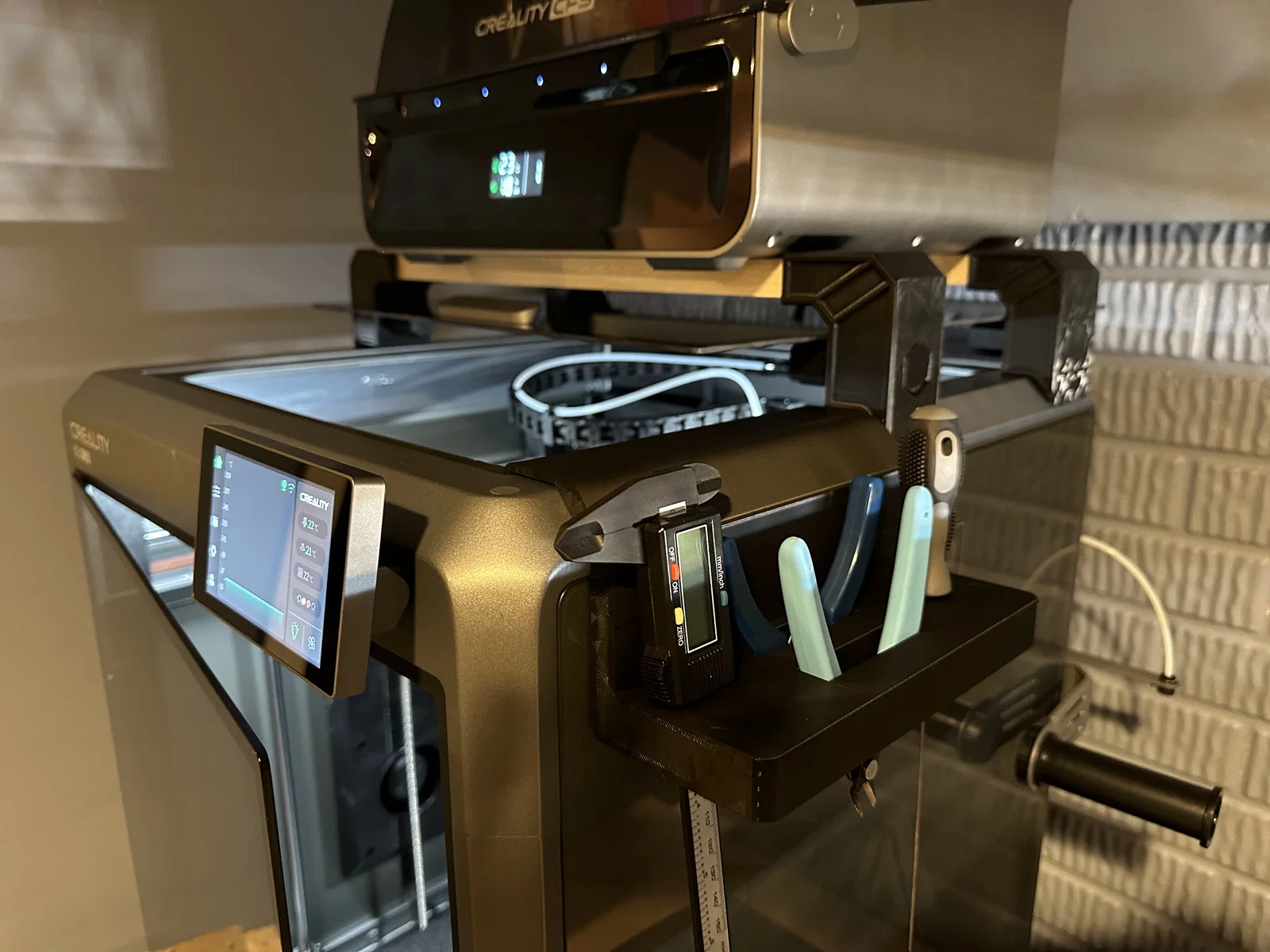 - Tối ưu hóa không gian: Được thiết kế riêng cho Creality K2 Plus, giúp treo gọn các loại kìm, thước kẹp điện tử và dụng cụ thường dùng.