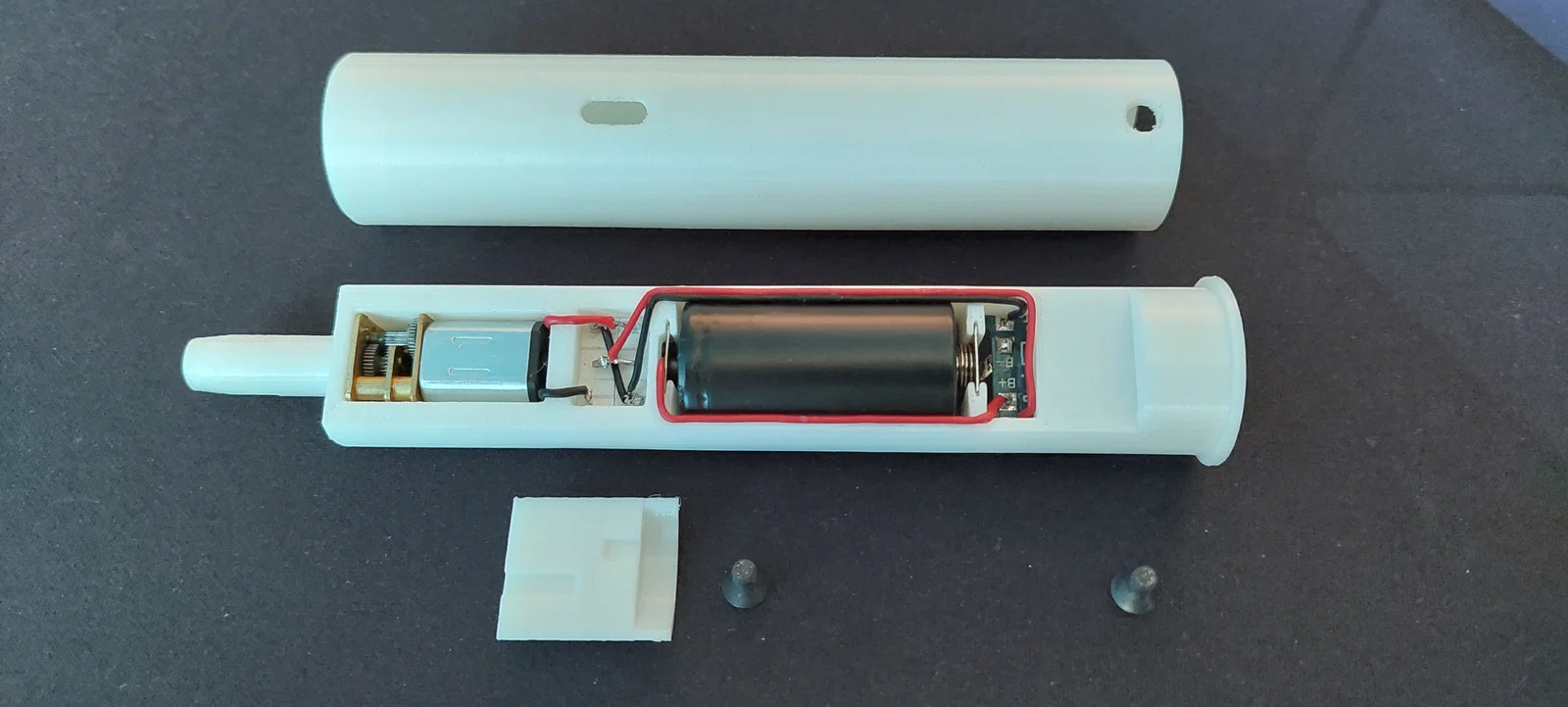 Mình quyết định tự tay làm một chiếc tua vít điện sạc lại được vì mình không ưng ý với các mẫu hiện có trên mạng hay ngoài cửa hàng. Thiết bị này được trang bị mạch bảo vệ pin, công tắc trượt, viên pin 4.4Wh và động cơ giảm tốc tỷ lệ 1:200. Máy dùng được rất lâu và sở hữu lực xoắn khá mạnh mẽ.