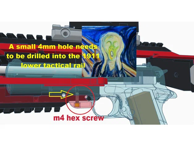 Bộ kit chuyển đổi carbine cho dòng 1911 GBB, được tối ưu hóa để in 3D dễ dàng, kèm theo nhiều cải tiến về thẩm mỹ và độ chắc chắn. Lưu ý đọc kỹ hướng dẫn khoan lỗ cố định súng để tránh hư hại do lực giật mạnh.
