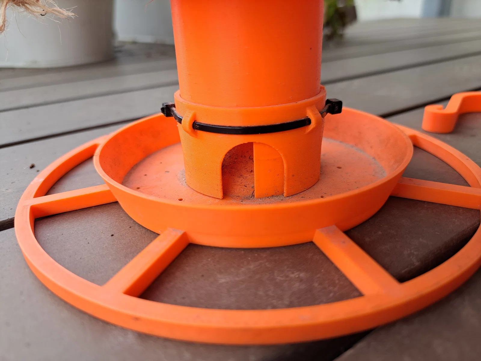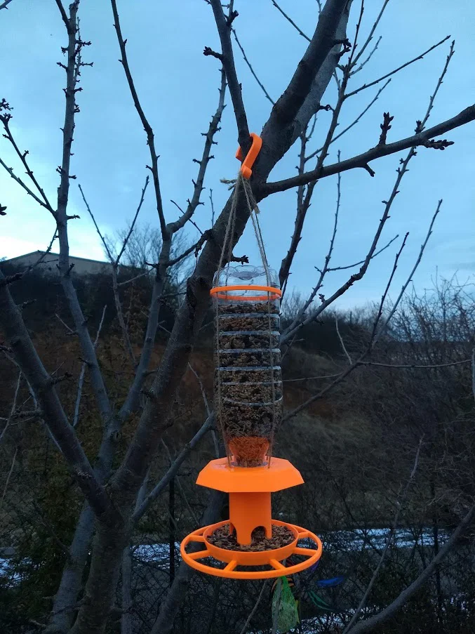 Mẫu máng cho chim ăn sử dụng chai nhựa cổ rộng (38mm). Thiết kế gồm khay đựng hạt và bộ điều chỉnh lưu lượng hạt tiện lợi, được in trên máy Prusa Mini+ với nhựa PLA. Một dự án đơn giản và hữu ích dành cho những người mới bắt đầu với OpenScad.