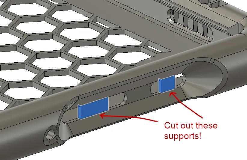 - Sau khi in xong, nhớ dùng dao bén cắt bỏ phần support đã được thiết kế sẵn (xem hình minh họa).