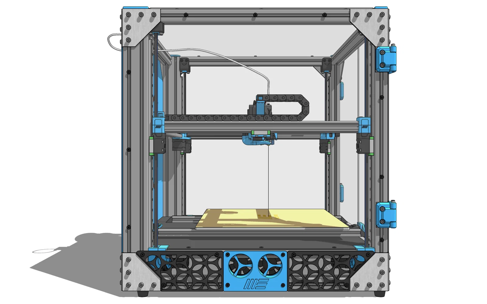 Vì muốn tự tay làm một chiếc Voron cho riêng mình, nên mình đã thiết kế ra con máy này. Đây là bản vẽ của mình về một chiếc máy in CoreXY, sử dụng nguyên lý cơ khí tương tự như dòng Voron.