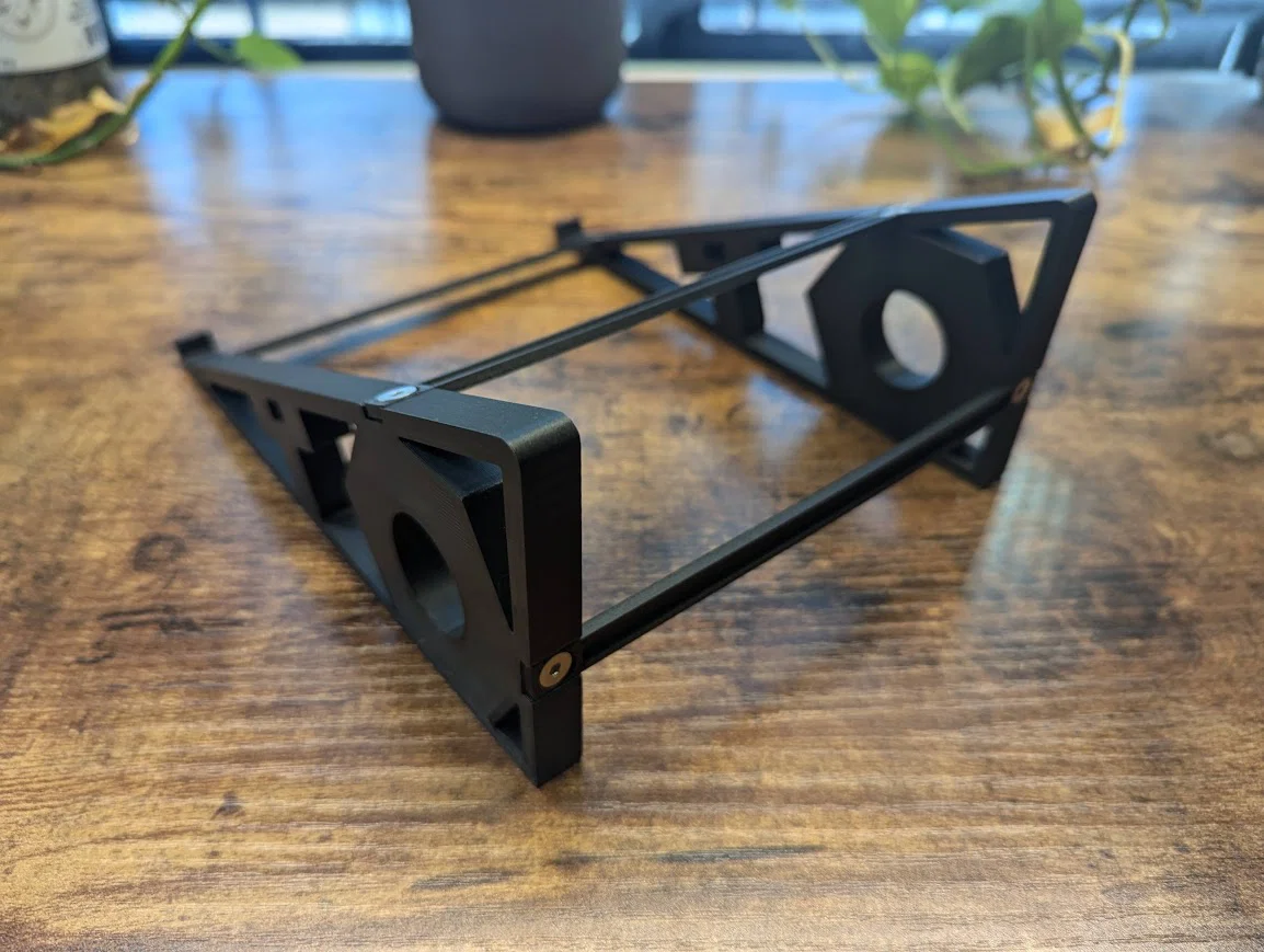 Cái chân đế này gồm 2 model, 5 mảnh in. Nó sử dụng ốc vít M4, vì vậy bạn cần chuẩn bị ốc vít đầu bằng M4x6mm và mình đã sử dụng thêm heat insert M4 loại đường kính 6mm dài 4mm. Bạn có thể dán thêm chân đế cao su nếu muốn, nhưng mình dùng trực tiếp thì thấy vẫn rất ổn và chắc chắn.