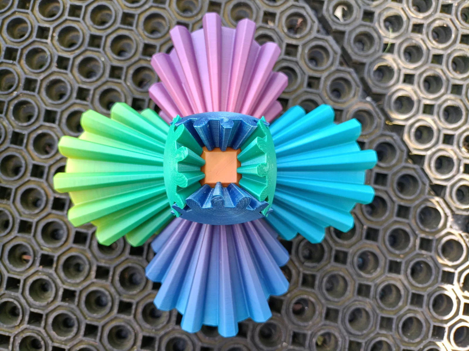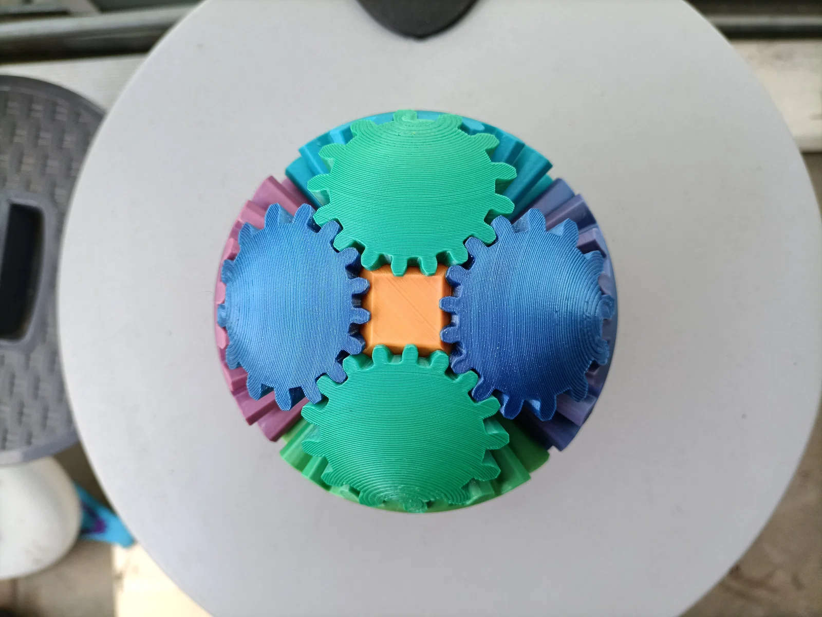 Thiết kế của Zahnradball đòi hỏi độ chính xác cao khi in ấn để đảm bảo các khớp nối vận hành trơn tru mà không bị kẹt. Mô hình bao gồm các bộ phận bánh răng lớn và nhỏ được sắp xếp tinh tế xung quanh một lõi trung tâm. Việc phối hợp nhiều màu sắc khác nhau cho từng bánh răng không chỉ làm nổi bật cấu trúc cơ khí mà còn tạo nên một món đồ chơi bắt mắt, sống động. Đây là minh chứng rõ nét cho sự kỳ diệu của công nghệ in 3D trong việc tạo ra các vật thể chuyển động cơ học mà không cần lắp ráp phức tạp.