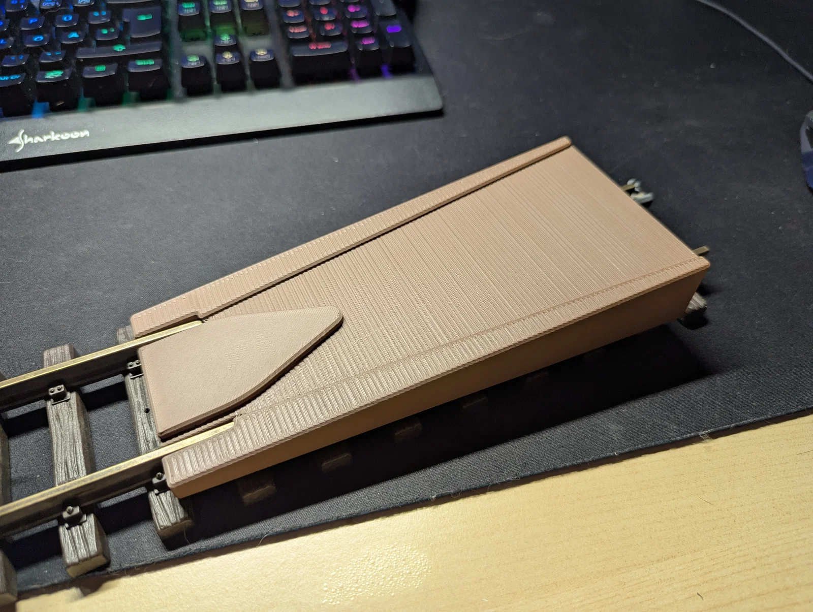Bạn đang cảm thấy mệt mỏi khi phải căn chỉnh từng bánh xe để đưa đoàn tàu mô hình lên đường ray? Dụng cụ hỗ trợ đặt tàu hỏa (Rerailing aid) chuyên dụng cho cỡ G (G-scale) và hệ thống ray LGB chính là giải pháp hoàn hảo cho bạn. Với thiết kế thông minh, dụng cụ này giúp bạn đưa đầu máy và các toa xe vào đúng vị trí một cách mượt mà và an toàn, tránh gây hư hại cho các chi tiết nhỏ. Sản phẩm rất dễ in 3D bằng chất liệu PLA, đảm bảo độ cứng cáp và bề mặt mịn màng giúp bánh xe trượt dễ dàng. Đây là phụ kiện đắc lực giúp tối ưu hóa thời gian chuẩn bị, để bạn tận hưởng trọn vẹn niềm vui sưu tầm và chơi xe lửa mô hình mỗi ngày.