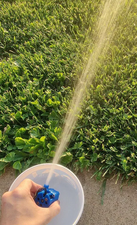 Đã thử nghiệm, hoạt động khá ổn. Mình chưa gắn ống dẫn. Với trạng thái hiện tại, nó phun nước mạnh tới tận 10 feet (khoảng 3 mét).