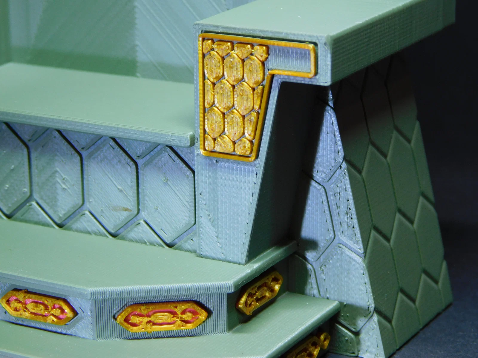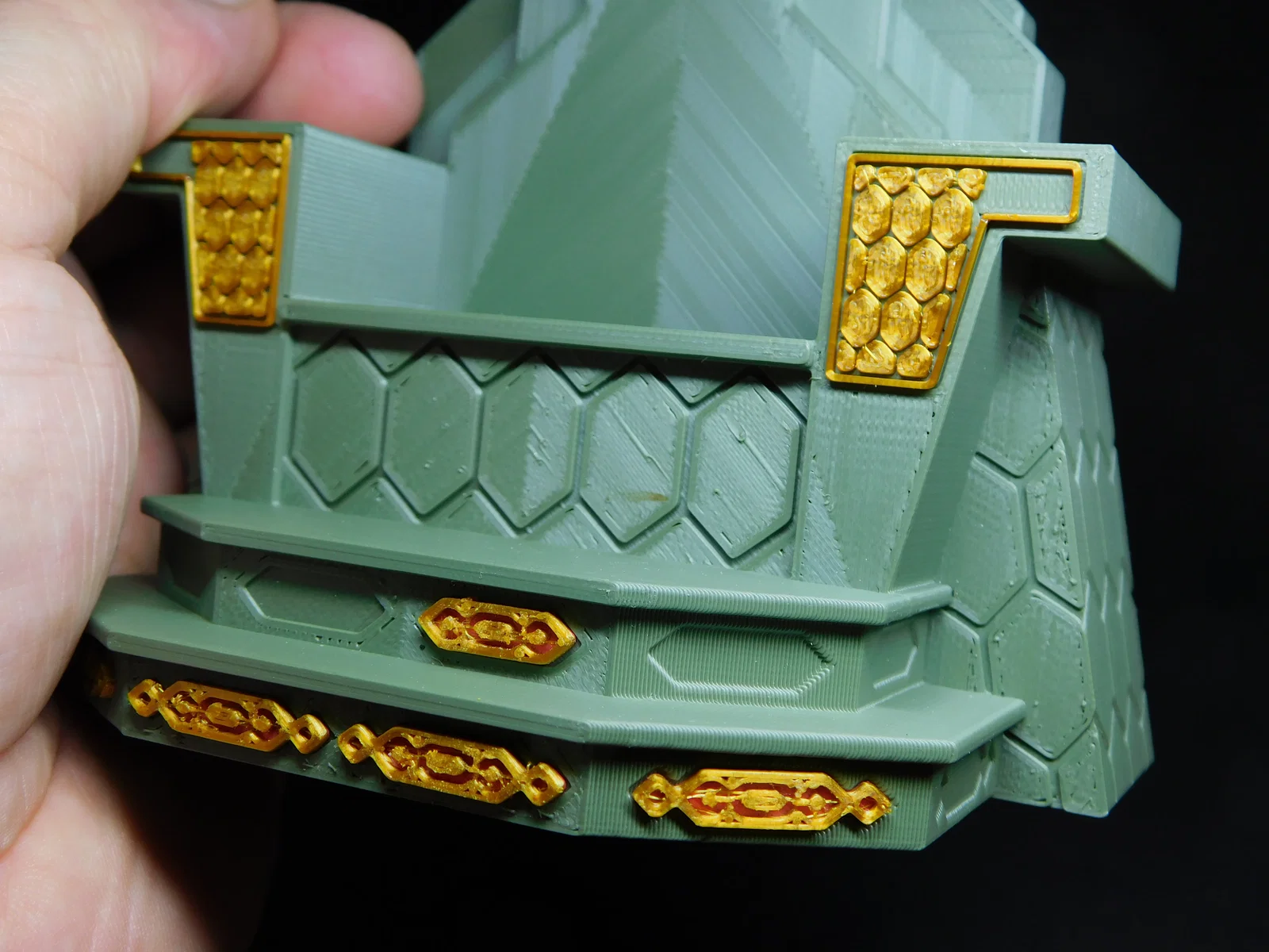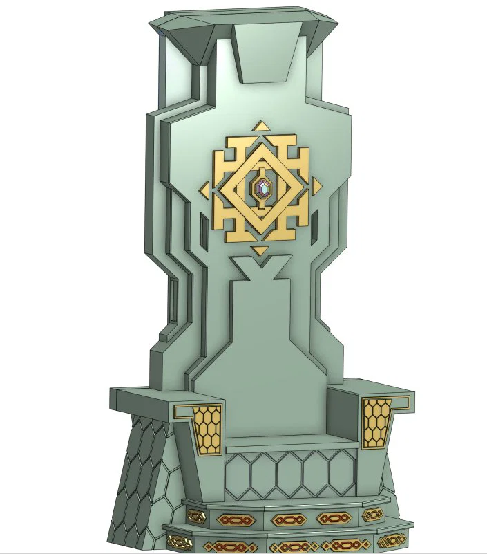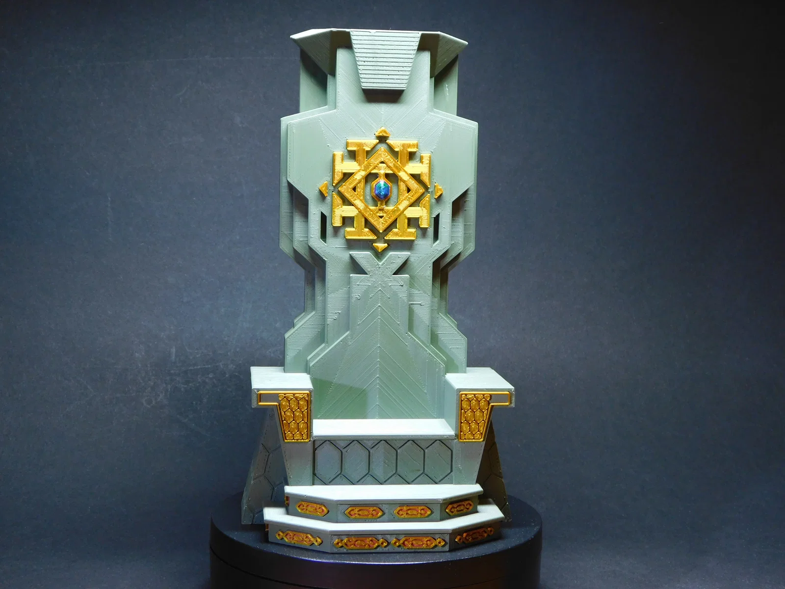 Ngai vàng của Vua Thror, Vua dưới chân núi. Một món quà dành cho fan của The Hobbit, Chúa tể những chiếc nhẫn, J.R.R. Tolkien và vùng Trung Địa. Một chiếc cúp dành cho những ai đủ kiên trì cày hết cả bộ ba phim này một lúc. Ngai vàng được thiết kế gồm hai phần kèm khớp nối giúp bạn không cần dùng đến support khi in. Mình đã tạo ra hai phiên bản - một bản liền khối không có chi tiết rời, và một bản có các họa tiết riêng biệt để in xong rồi dán vào các lỗ trên ngai. Bạn có thể tìm thêm mẫu vật có cùng chủ đề - Trụ cột Moria, tại đường dẫn này: