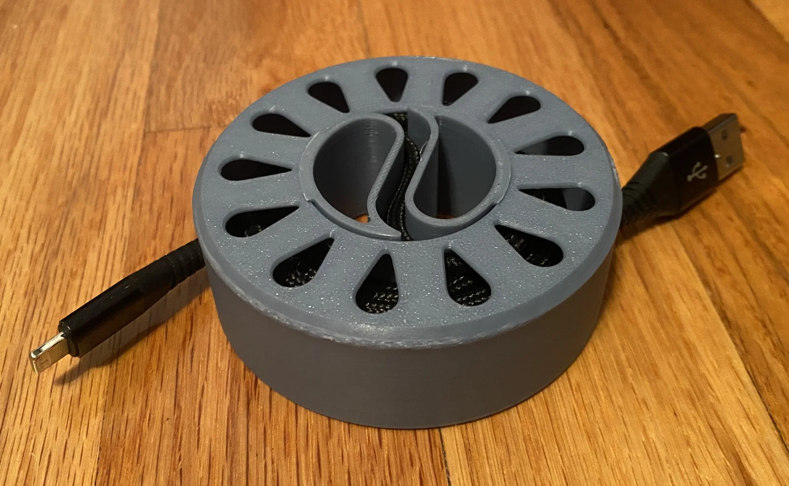 Ống cuộn dây 2 mảnh tiện lợi giúp bạn lưu trữ và sử dụng dây cáp mà không cần tháo rời. Thiết kế tối ưu, nhẹ, tiết kiệm vật liệu chỉ với 30g filament và cực kỳ dễ in không cần support.
