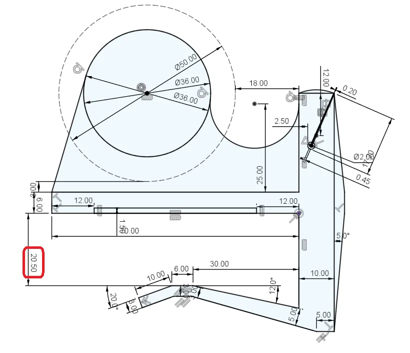Để chỉnh sửa mô hình cho phù hợp với loại băng keo tương tự và độ dày mặt bàn của bạn, hãy sửa các bản phác thảo/kích thước được đánh dấu màu đỏ.