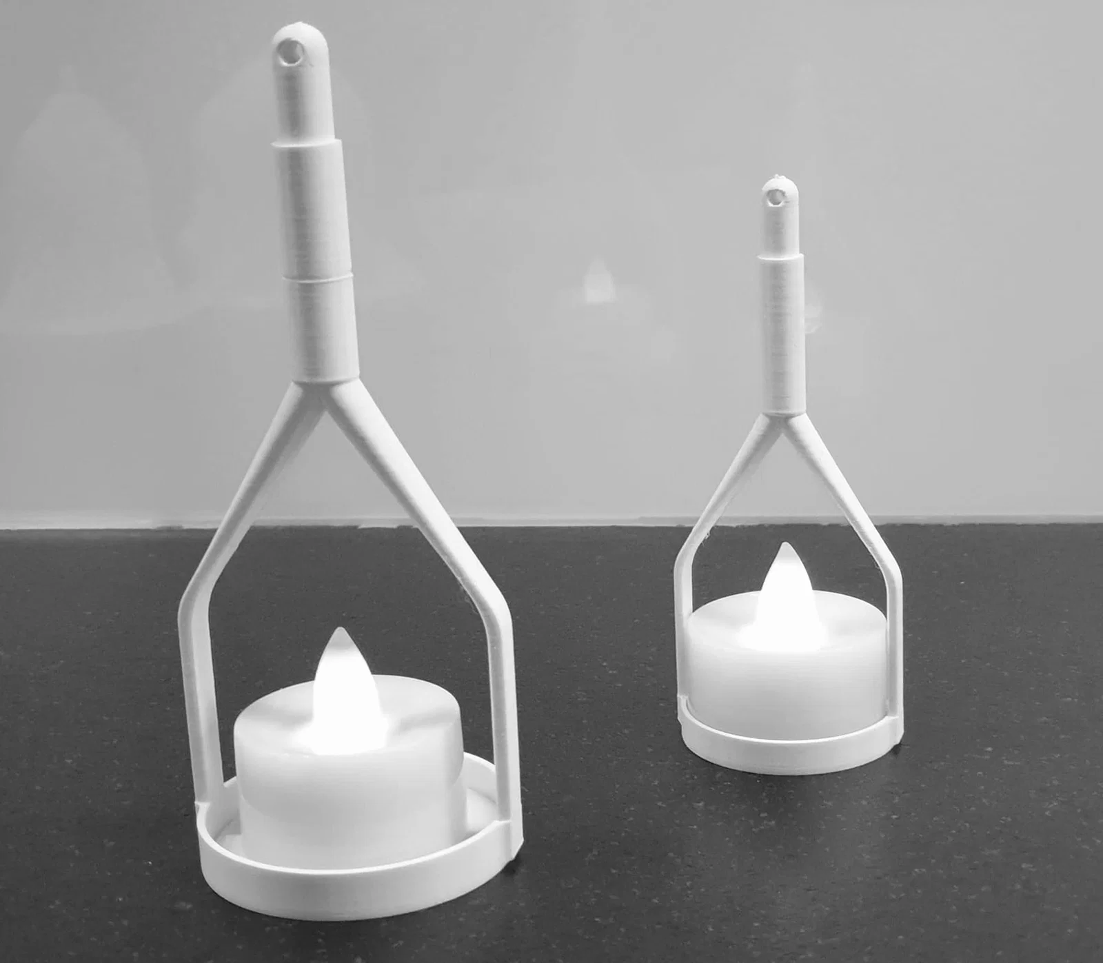 Mô hình chuông Giáng sinh và giá đỡ cực dễ in với hai kích cỡ khác nhau. Giá đỡ được thiết kế để treo nến tealight điện tử (36 mm), tương thích hoàn hảo với các mẫu chuông lithophane cao 80 mm hoặc 100 mm.