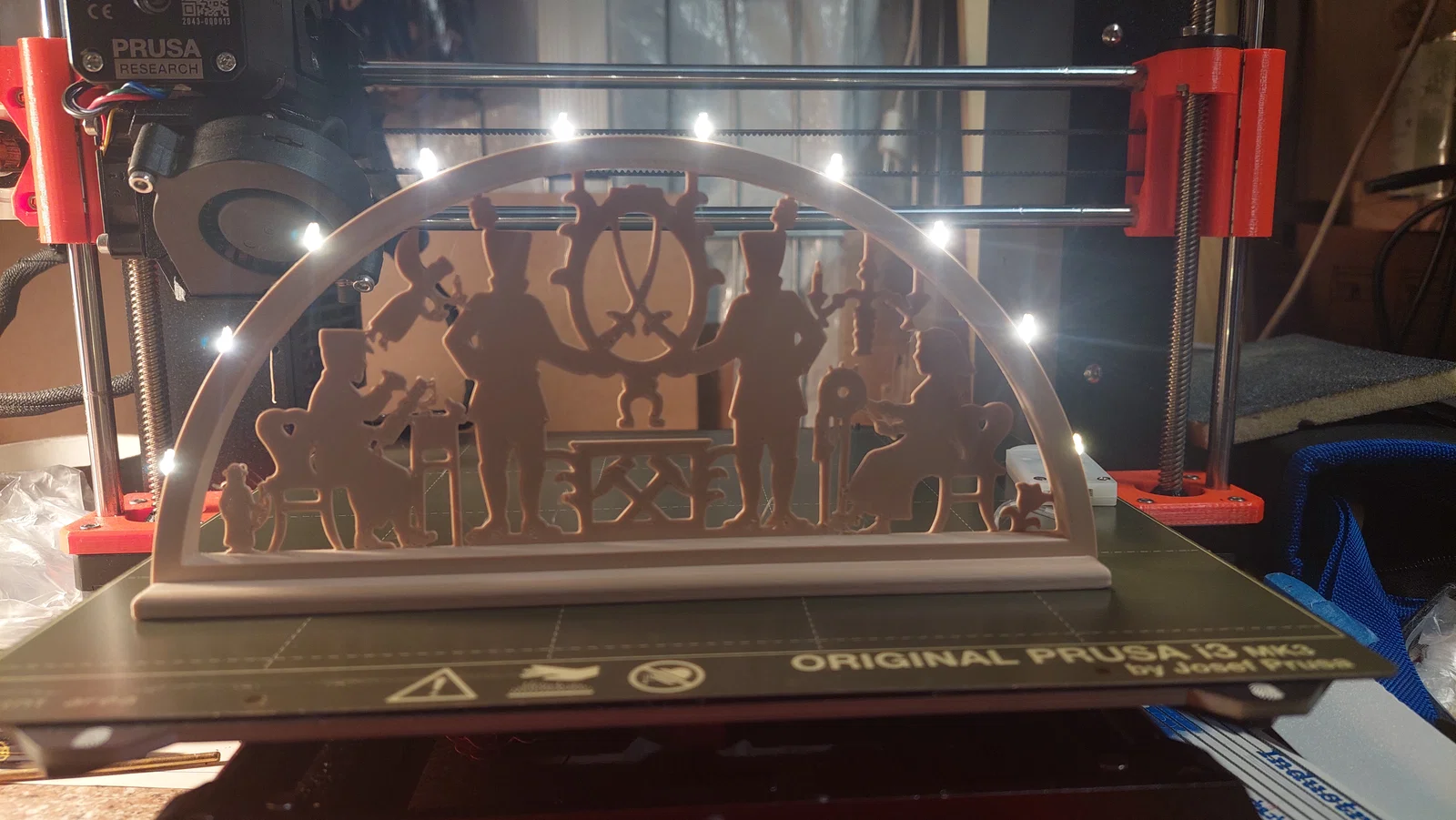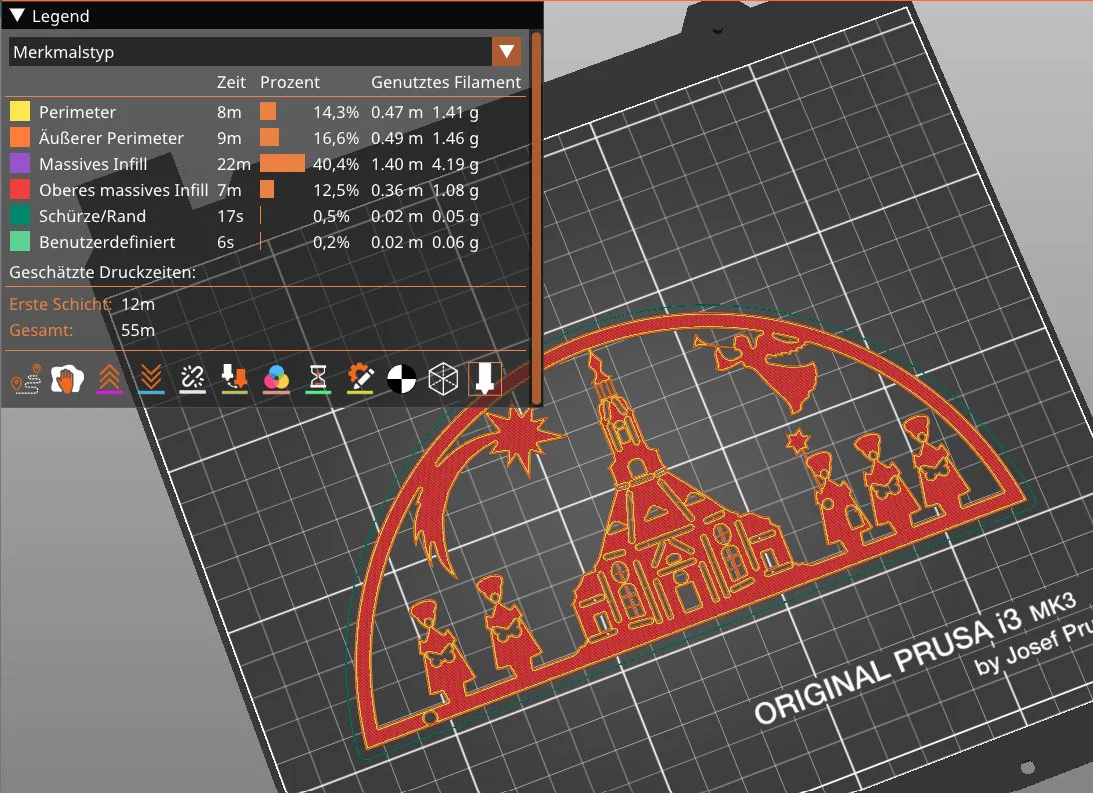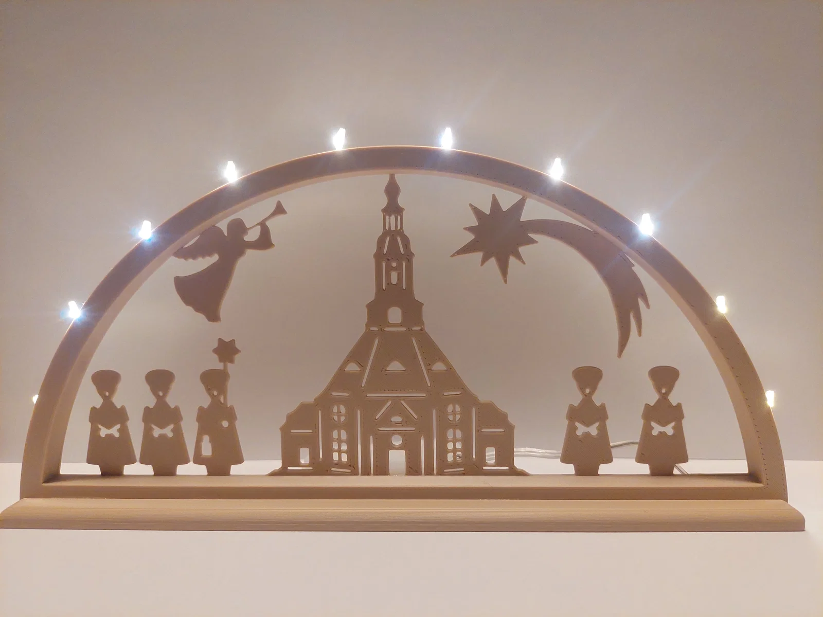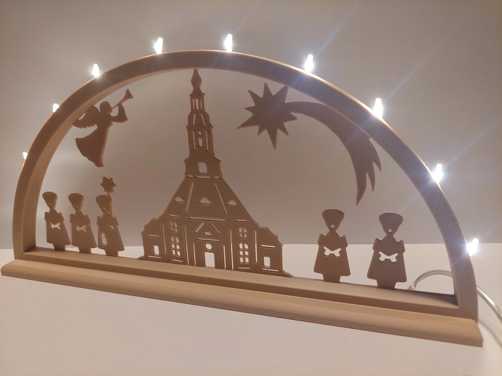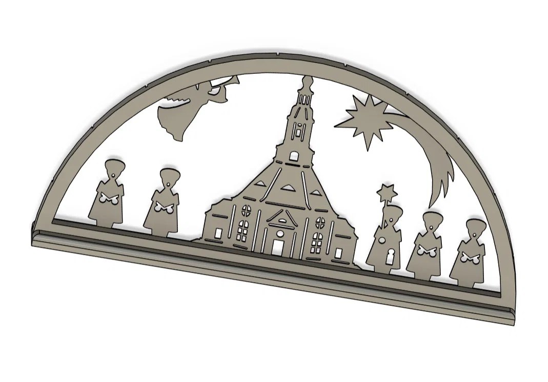 Schwibbogen (vòm nến) mô phỏng nhà thờ trên núi Seiffen cùng các nhân vật đi hát thánh ca. Mẫu này do chính tay mình thiết kế và dựng trên Fusion 360. Để hoàn thiện sản phẩm, các bạn cần chuẩn bị thêm một bộ dây đèn LED mini 10 bóng, keo dán và một chút kiên nhẫn. Mình đã dùng bộ dây đèn này và thấy rất ổn, các bạn có thể tìm các loại khác nhưng lưu ý kích thước đừng lớn quá nhé. Được in trên máy Prusa i3 MK3S+ bằng nhựa PLA, dùng đầu phun 0.4mm, chiều cao lớp in 0.2mm và không cần hỗ trợ (supports). Tổng thời gian in cho cả 3 bộ phận khoảng 3 tiếng 14 phút. Nếu bạn thích, mình còn có một mẫu khác với mô hình xe Wartburg, Trabant và bóng nhà thờ Leipzig . Chúc mọi người có một mùa Vọng an lành và in ấn vui vẻ, nếu có phản hồi gì thì cho mình biết với nha!