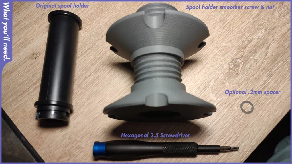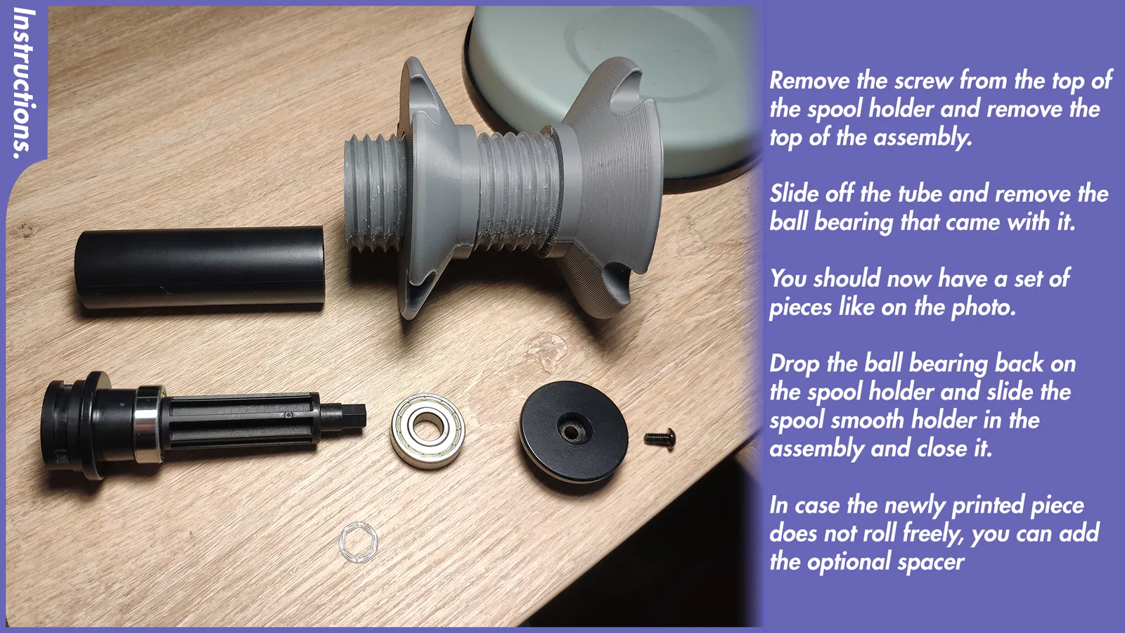 Trong các tệp đính kèm có ốc và vít, một bài kiểm tra ren để biết liệu mày có cần điều chỉnh cài đặt máy in của mình trước khi in hết hay không, và một miếng đệm tùy chọn để đặt sau vòng bi nếu bản in của mày quá dài và không quay trơn tru.