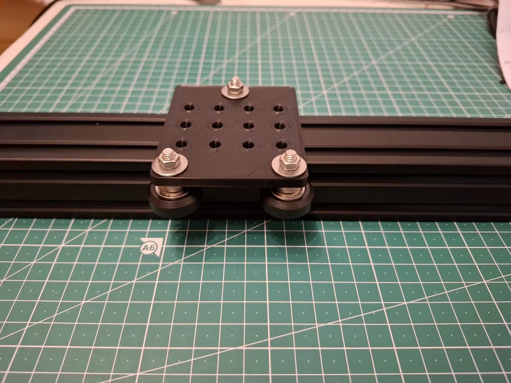 Đây là tấm đế gantry (gantry plate) dùng cho 3 bánh xe trượt, được thiết kế để lắp vừa trên thanh nhôm định hình V-slot rộng 40mm.