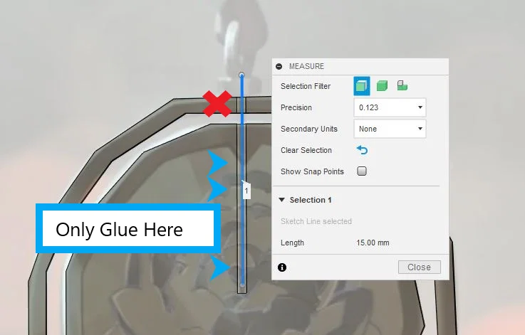 4. Cắt "Gauge Head Pin" thành đoạn 1cm. Xỏ ghim qua hai lỗ ở phía dưới. Dùng keo siêu dính để gắn phần chốt của ghim CHỈ VÀO OuterRing.
