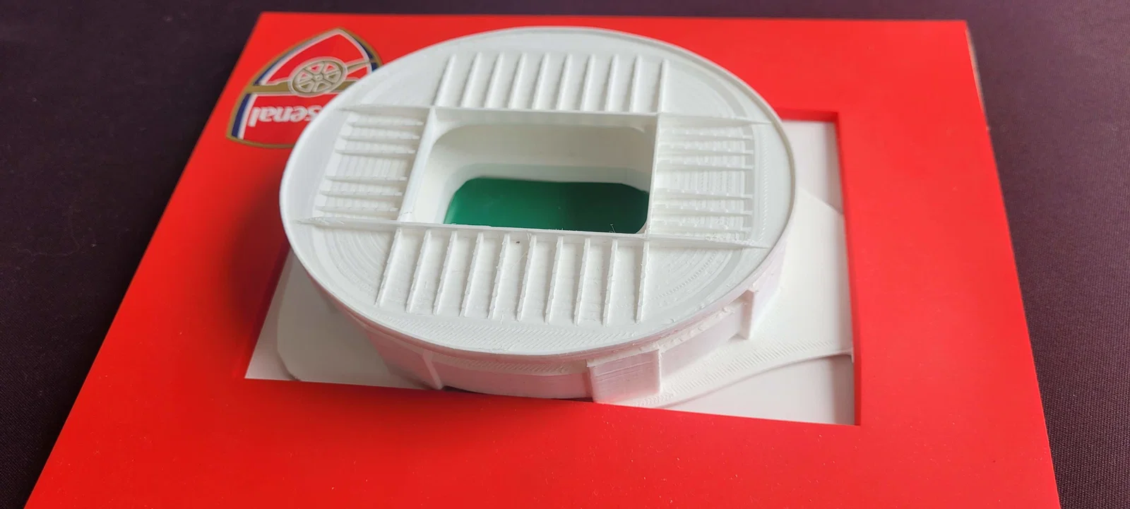 Chào mừng đến với sân vận động Emirates, sân nhà của Arsenal Sân vận động Emirates (được biết đến với tên gọi Sân vận động Arsenal tại các giải đấu của UEFA) là một sân vận động bóng đá nằm tại Holloway, London, Anh. Đây là sân nhà của Câu lạc bộ bóng đá Arsenal kể từ khi hoàn thành vào năm 2006. Sân hiện có sức chứa 60.704 chỗ ngồi, trở thành sân vận động bóng đá lớn thứ năm tại Anh tính theo sức chứa. - Phần khung quanh đế của mô hình không được in. Nó được mua từ cửa hàng trực tuyến của Arsenal.