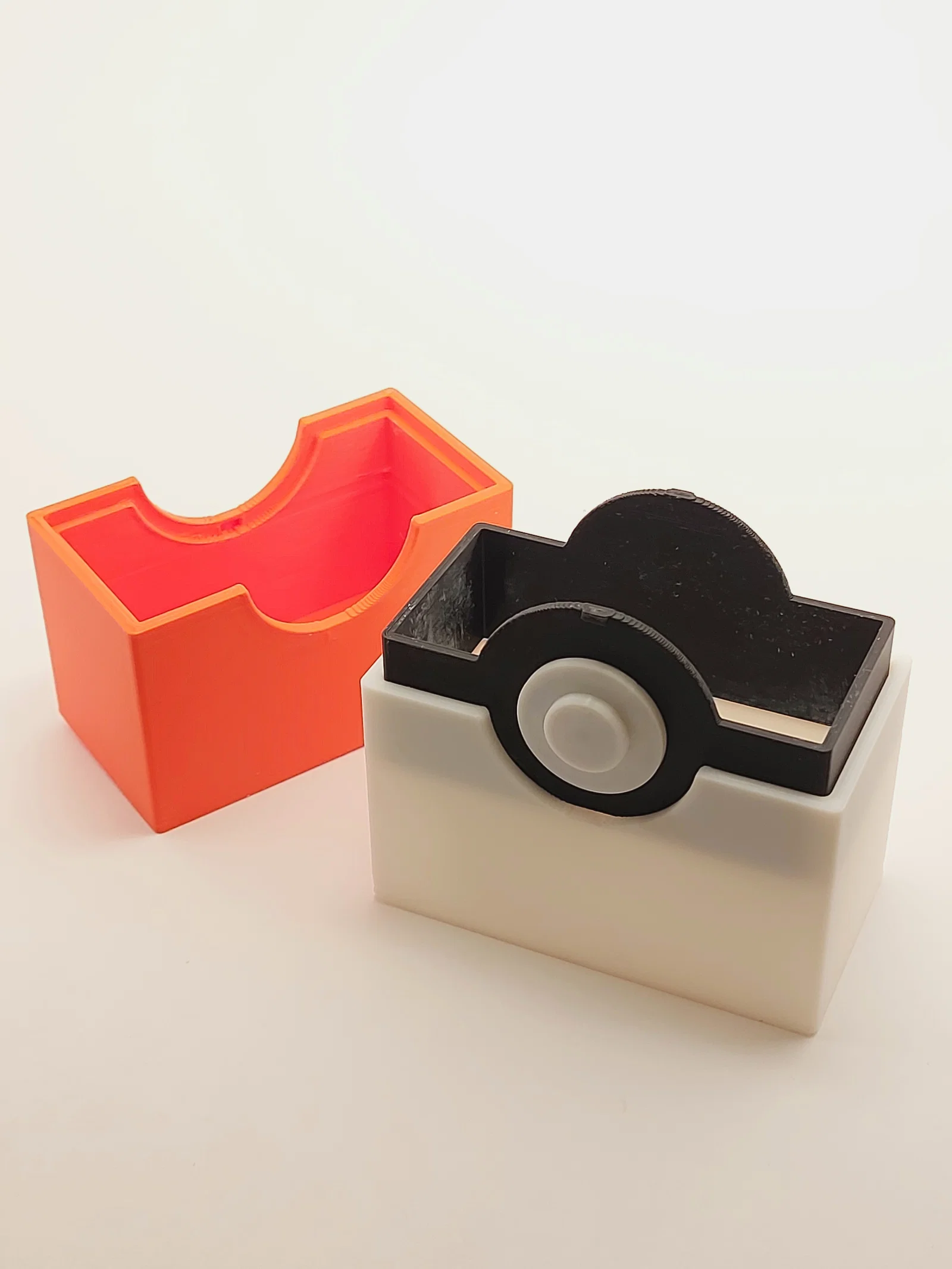 Mình đã tách phần giữa của hộp ra để bạn có thể in bằng nhựa màu đen, giúp sản phẩm trông giống quả Pokeball thực tế hơn.