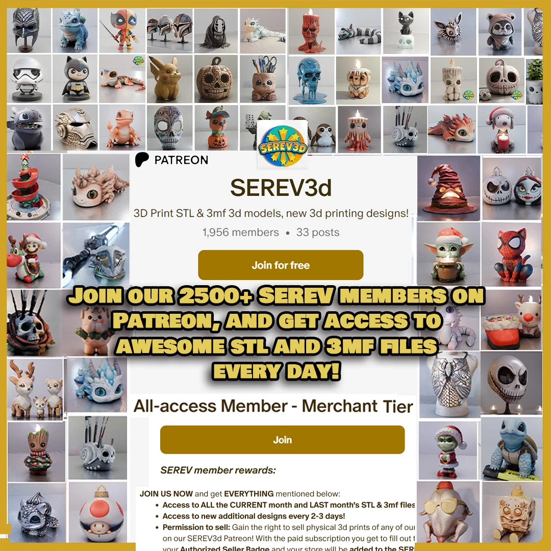- Nếu bạn muốn bán các sản phẩm in 3D từ các thiết kế của chúng tôi, hãy nhận Huy hiệu Người bán Ủy quyền Serev3d khi tham gia gói thành viên trả phí của chúng tôi, chúng tôi sẽ đặt thông tin cửa hàng của bạn vào Danh sách Người bán Ủy quyền