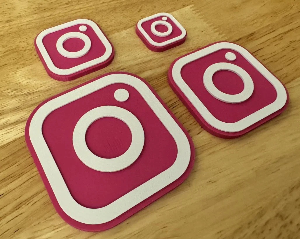 Mô hình nam châm logo Instagram xinh xắn, dễ in đa màu ngay cả với máy in đơn đầu phun bằng cách thay đổi sợi nhựa. Phụ kiện trang trí bắt mắt cho tủ lạnh, bảng trắng hoặc tủ đồ văn phòng. Hỗ trợ in nhiều phần tách rời cực kỳ tiện lợi.