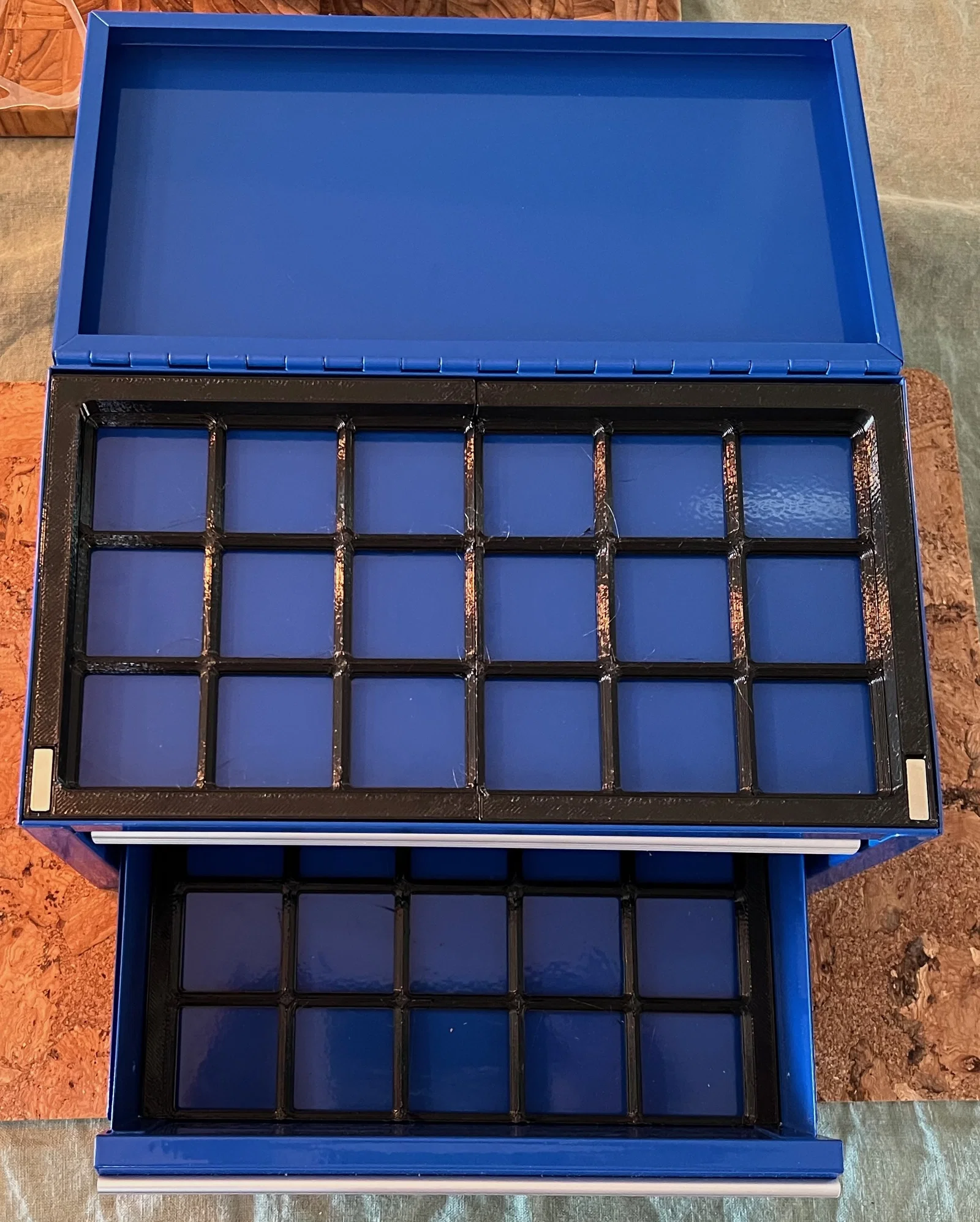 Đế Gridfinity cơ bản dành cho các ngăn kéo và phần nắp trên của hộp dụng cụ Kobalt Mini. Thiết kế này giúp bạn sắp xếp dụng cụ gọn gàng hơn với chuẩn Gridfinity linh hoạt, hỗ trợ cả nam châm để cố định chắc chắn.