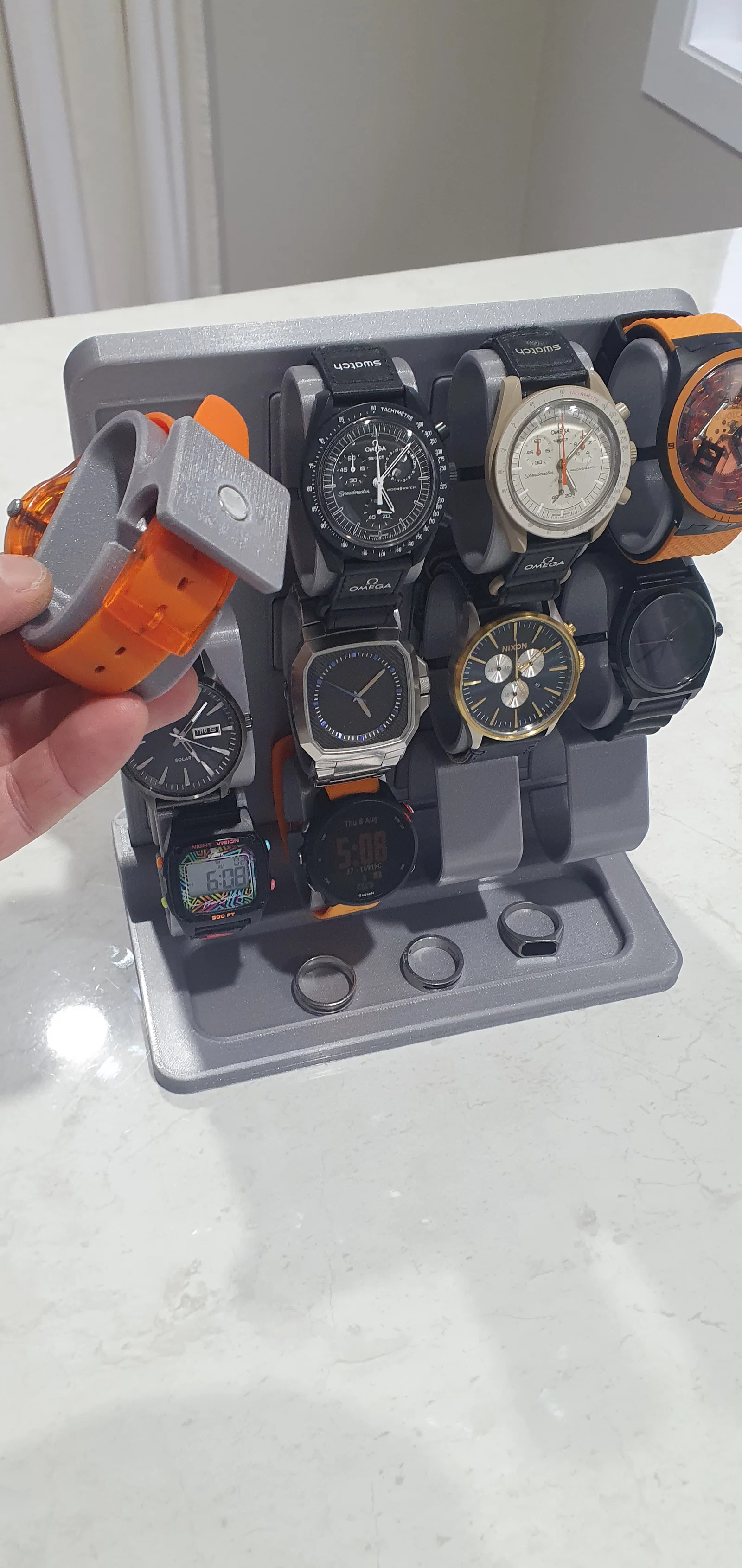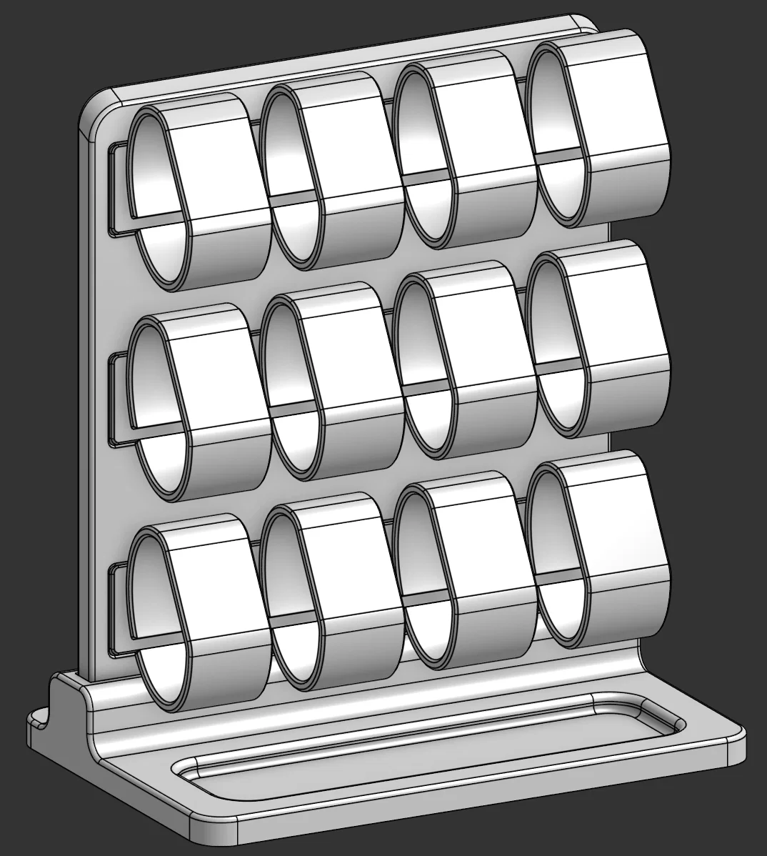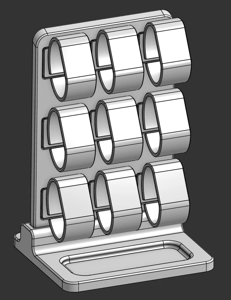 Giá đỡ đồng hồ với cấu hình tùy chọn lên đến 12 chiếc! Phần chân đế còn được tích hợp thêm khay để đựng các phụ kiện nhỏ, trang sức khác. Thiết kế modular tiện lợi, sử dụng nam châm để cố định, không cần support khi in.