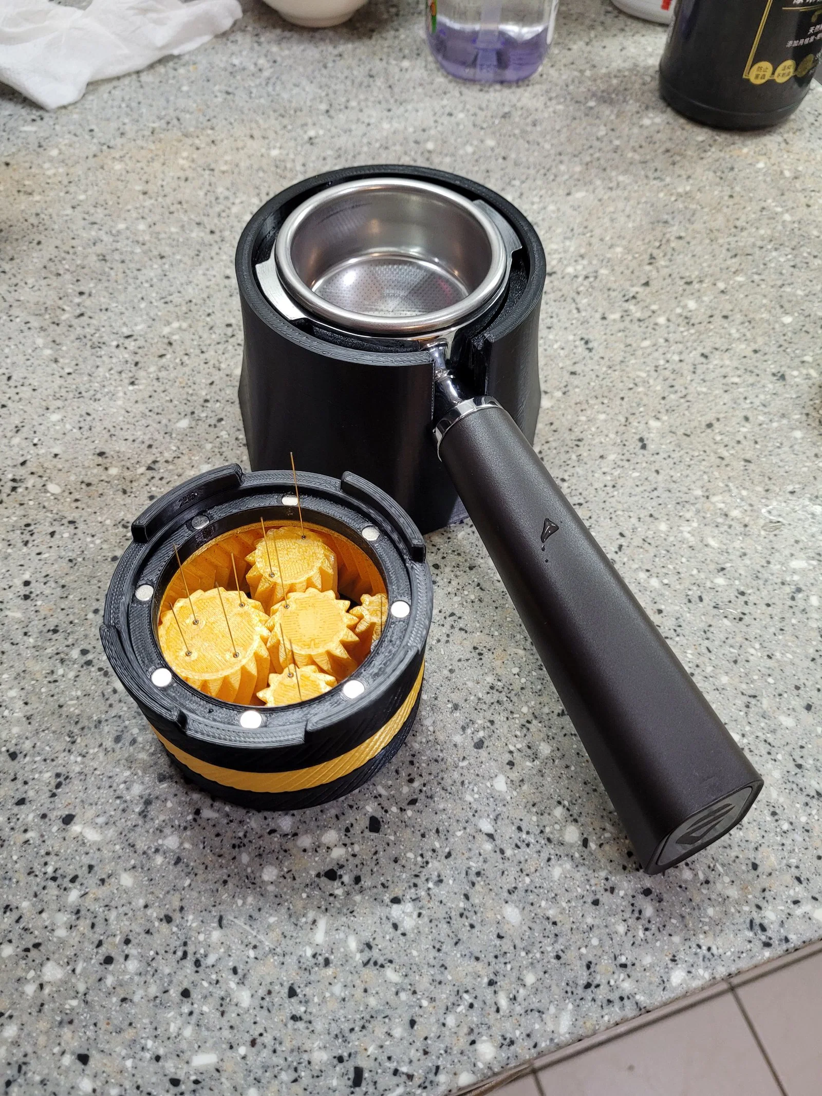 Đế rất chắc chắn khi nén cà phê, đồng thời có thể dùng kèm với phiên bản tab ngắn của "Umikot (58mm Version) - Planetary Gear Spirograph Espresso WDT Tool".