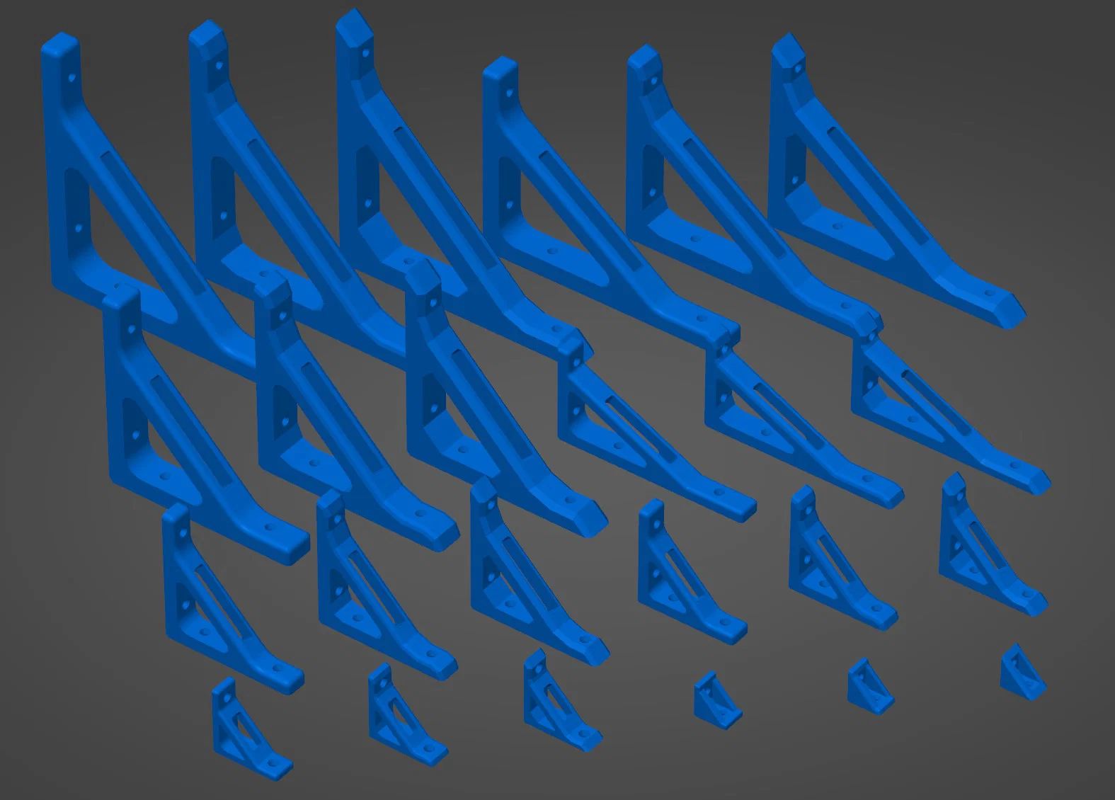 Đây là mẫu ke góc 90 độ dạng tham số (parametric) đơn giản nhưng cực kỳ linh hoạt. Bạn có thể tùy chỉnh kích thước cho gần như mọi nhu cầu thông qua các thông số trong OpenSCAD. Ke góc này cũng hỗ trợ 3 kiểu dáng khác nhau: Normal Bevel, Low Poly và Extra Low Poly.