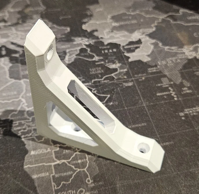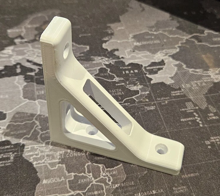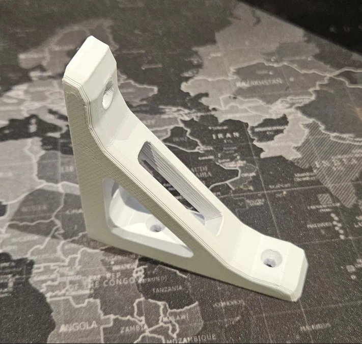 Tôi khuyến khích in nằm phẳng, có thêm hỗ trợ (support) bên trong khe gắn ốc ở phần ke đỡ. Xem ảnh để biết ví dụ cụ thể.
