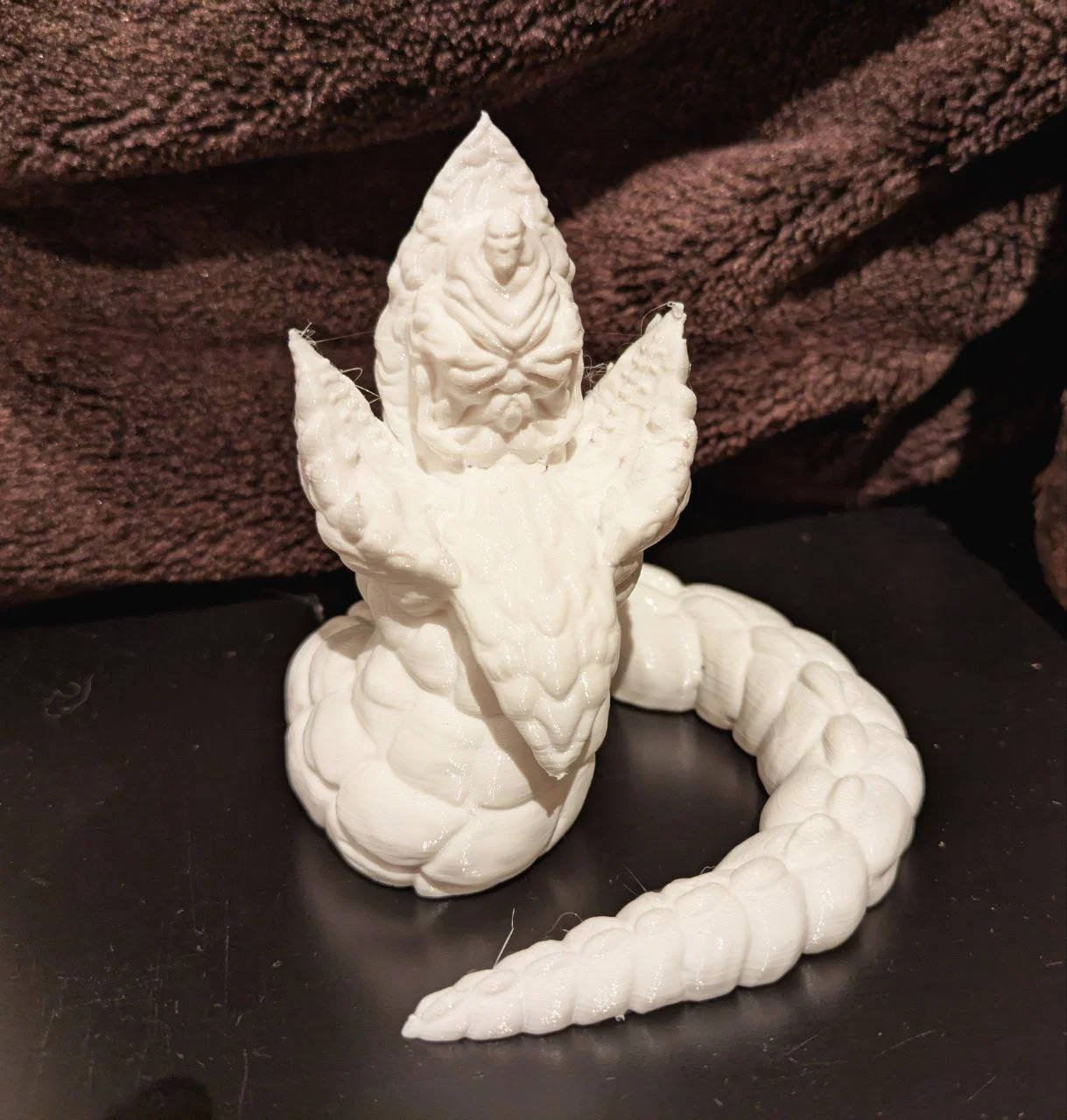 Về phần in ấn: Phần bàn tay của Leto khá khó in. Như các bạn có thể thấy trong ảnh, mình đã bị lỗi ở lần in đầu tiên. Mình đã thử in với support chỉ ở mặt bàn in. Có lẽ sẽ ổn hơn nếu in ở tỉ lệ lớn hơn và đặt support toàn bộ (everywhere).