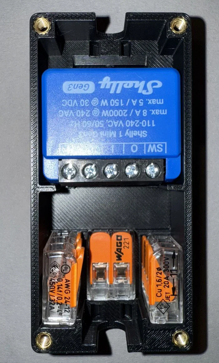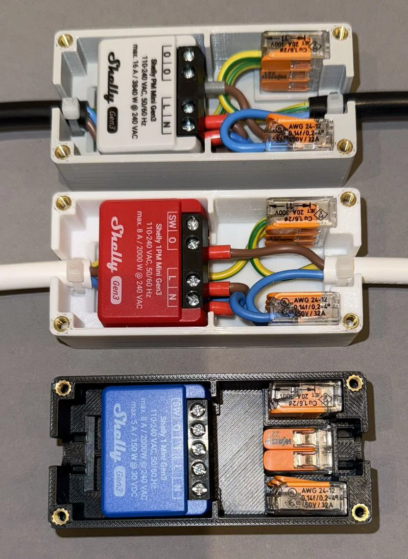 Mẫu vỏ bảo vệ được thiết kế tối ưu, dễ in dành cho các thiết bị Shelly mini 1, mini 1PM và mini PM. Sản phẩm có không gian cho cùm WAGO, giúp đi dây gọn gàng, đồng thời đảm bảo các nút bấm và đèn LED vẫn hoạt động tốt.