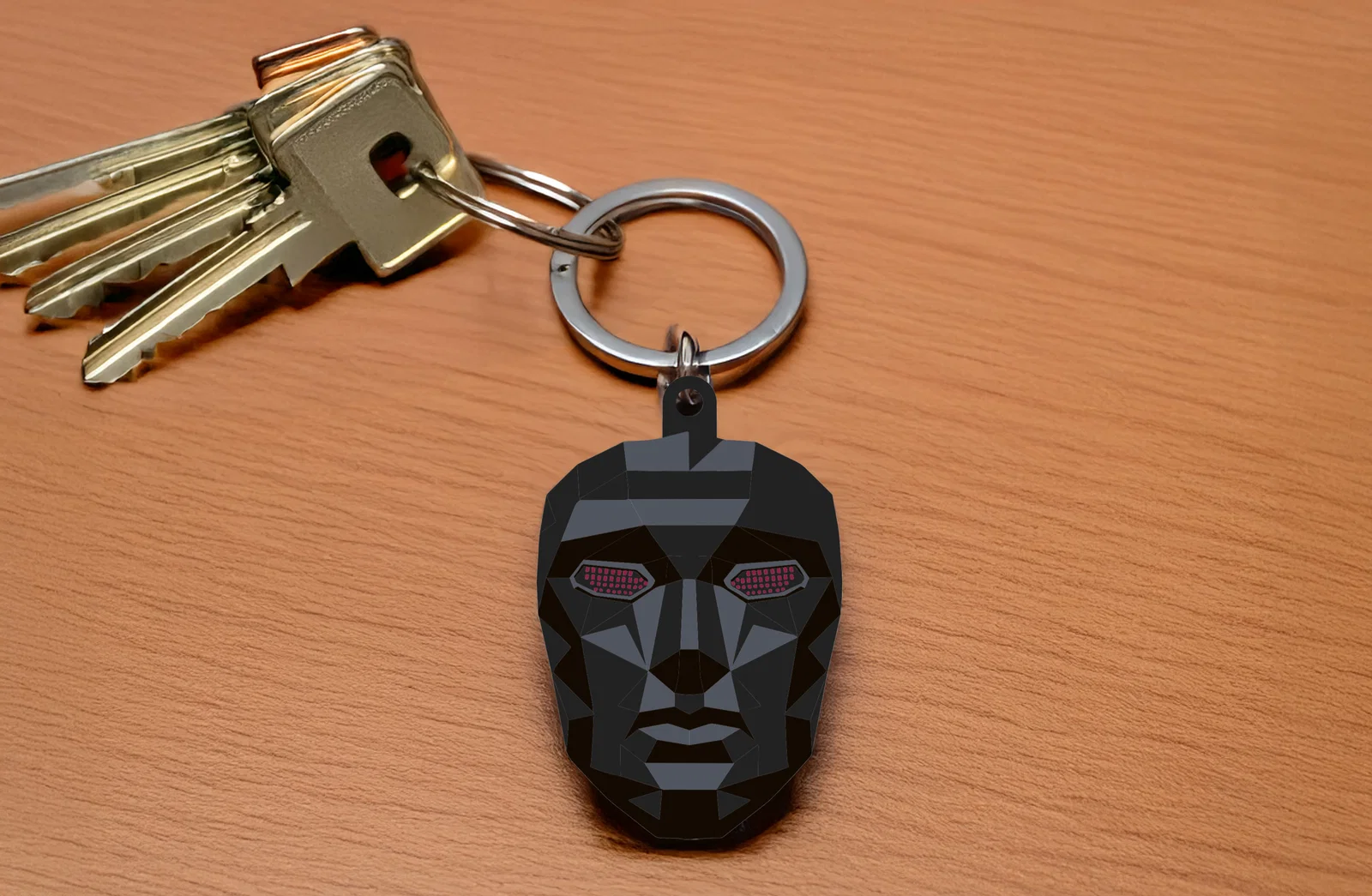 Nếu bạn là một "fan cứng" của bộ phim đình đám Squid Game, chắc chắn hình ảnh chiếc mặt nạ đầy bí ẩn của nhân vật The Front Man đã để lại ấn tượng rất sâu sắc. Mẫu móc khóa này được thiết kế theo phong cách low-poly, tạo nên vẻ ngoài hiện đại, góc cạnh và vô cùng độc đáo. Đây không chỉ là một phụ kiện trang trí đơn thuần mà còn là món quà ý nghĩa để bạn thể hiện cá tính riêng của mình cùng niềm đam mê đối với những bộ phim điện ảnh chất lượng.