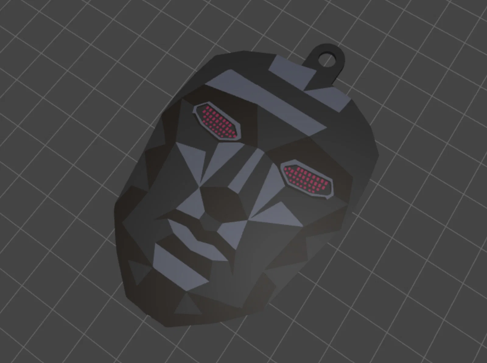 - Vật liệu in: Nhựa PLA là lựa chọn tối ưu nhất nhờ độ cứng tốt và khả năng giữ chi tiết sắc nét cho các cạnh low-poly của mặt nạ.