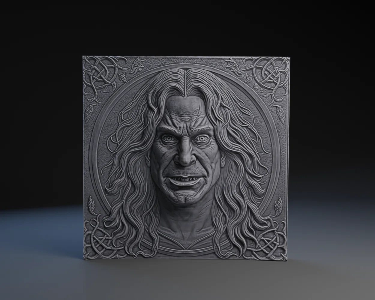 Tấm phù điêu Prince of Darkness độc đáo. Mình đã đính kèm thêm hình ảnh và file depth map để các bạn có thể tự tay làm sản phẩm này bằng kỹ thuật displacement một cách dễ dàng nhất.