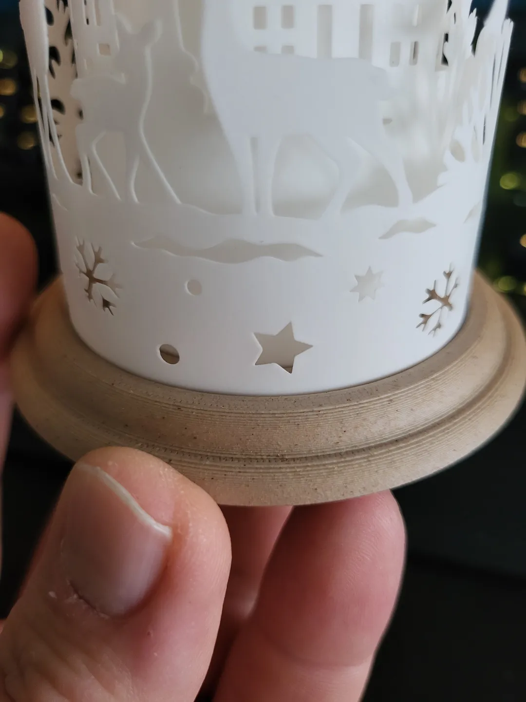 Tháng 1 năm 2024: Phiên bản 2 của phần đế đã được tải lên. Đây là phiên bản hoàn toàn mới với diện mạo tinh tế hơn. Ngoài ra, phần đế có các lỗ ở đáy để gắn kẹp giữ lồng đèn (xem 3 hình ảnh cuối). Bạn có thể dùng kẹp hoặc dán keo tùy ý.