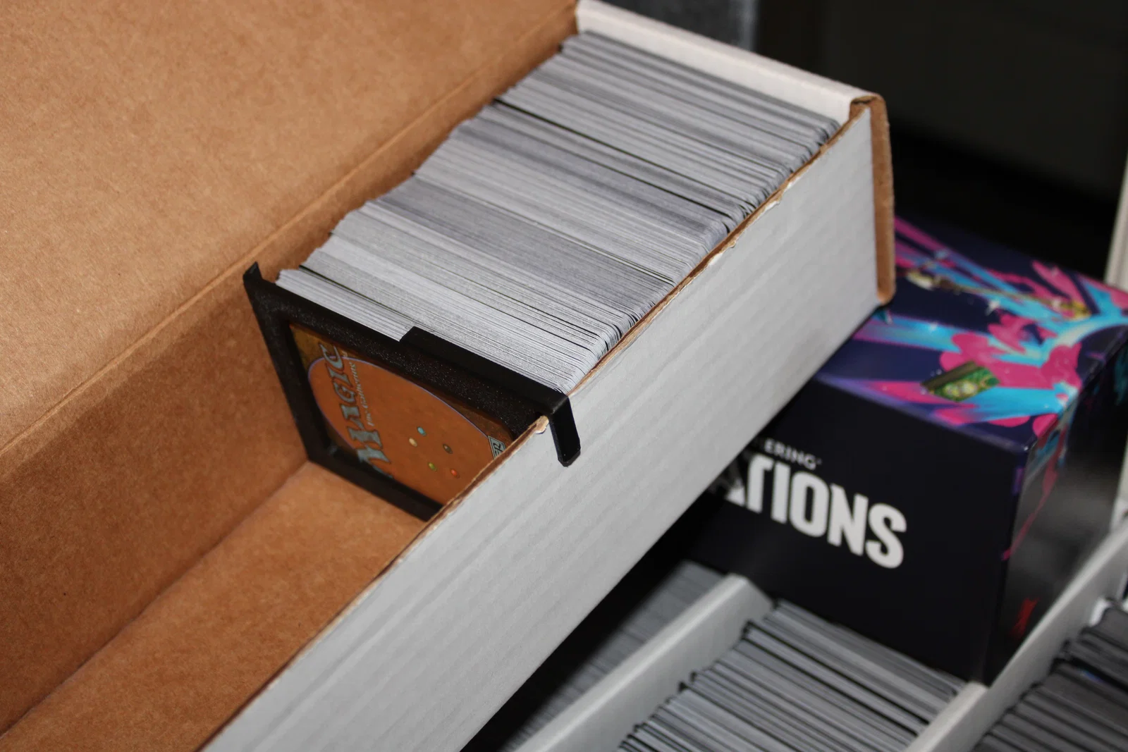 Đính kèm là các mẫu vách ngăn dùng để phân loại thẻ bài, được thiết kế vừa vặn với các hộp đựng chuẩn BCW long box, hộp nhiều ngăn (multi-row box) và hộp đựng bài MTG Fat Pack / Pokemon Elite Trainer Box (ETB).