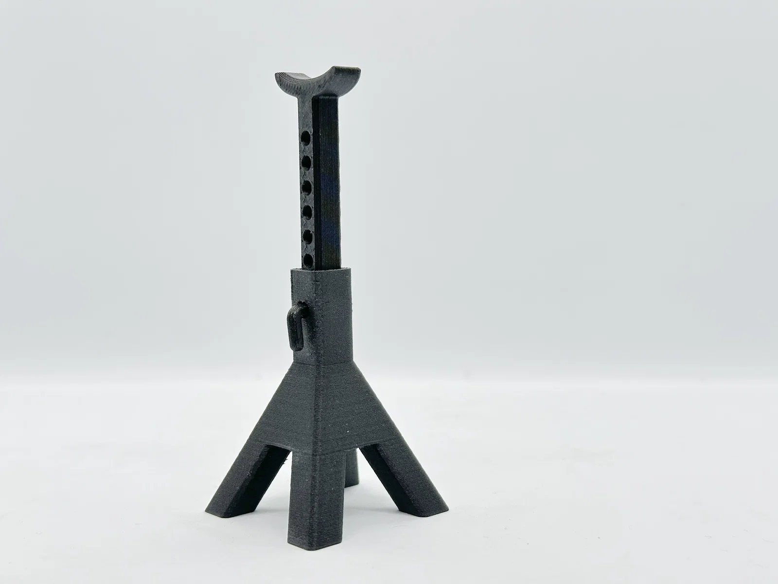 Bộ chân đế nâng gầm (jack stands) dùng để trưng bày các dòng xe RC crawler tỉ lệ 1/10 mà không sợ lốp xe bị biến dạng (flat spots). Việc giữ tải trọng trên hệ thống treo thay vì đặt lên tấm bảo vệ gầm (skid plate) giữa xe giúp giữ được độ cao gầm xe như ý muốn - nhìn xe sẽ ngầu hơn hẳn.