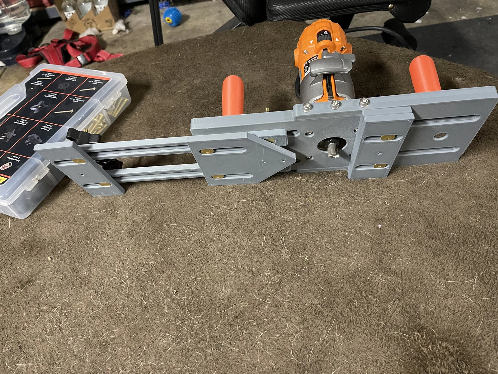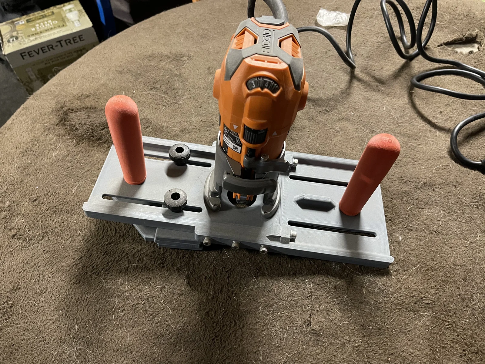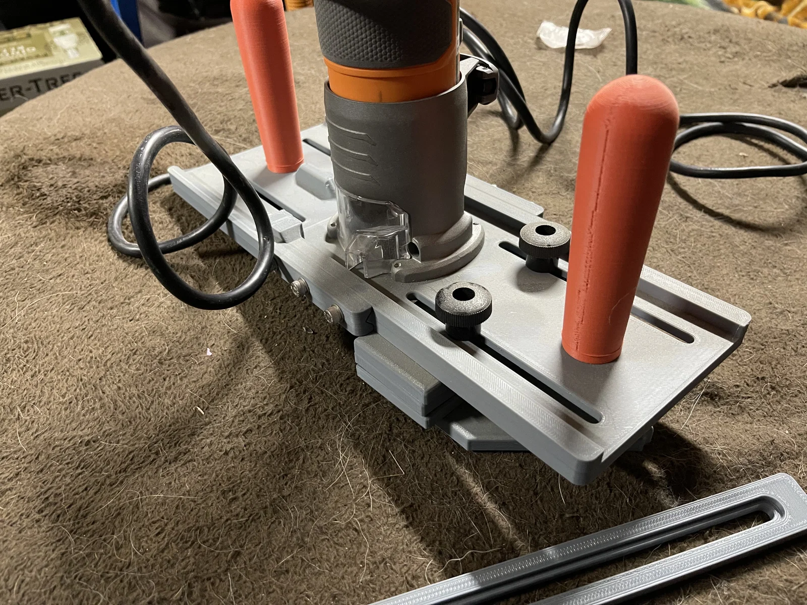 Tôi rất cần một bộ gá (jig) đa năng cho máy phay cầm tay (palm router) để thực hiện các công việc như soi mép (flush trim), phay tự do, cắt hình tròn và nhiều tác vụ khác. Tôi đã tham khảo nhiều thiết kế khác nhau, nhưng vì chỉ có máy in 3D với khổ in 220x220mm cùng một ít nhựa in, tôi quyết định tự thiết kế riêng.