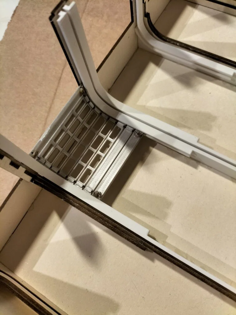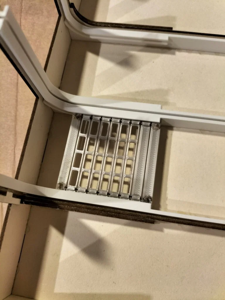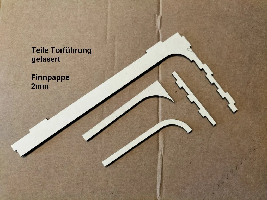Tiếp tục với chuỗi dự án tòa nhà được thực hiện bằng công nghệ cắt laser và in 3D. Lần này, tôi mang đến một nhà xưởng với cửa cuốn di động dành cho xe tải, rất linh hoạt để bạn biến tấu thành trạm cứu hỏa, nhà chứa xe cứu hộ (THW), xưởng kiểm định xe, gara sửa chữa hoặc làm kho bãi. Tỷ lệ mô hình là 1:87 (H0) quen thuộc. Các bức tường và mái được cắt laser từ bìa cứng Finnpappe dày 2mm. Riêng phần đế và các tấm ốp trang trí được cắt từ cùng loại vật liệu nhưng dày 1mm. Thanh ray dẫn hướng cửa cuốn có hai lựa chọn: cắt từ bìa Finnpappe 2mm hoặc in 3D. Các cửa sổ và chi tiết cửa cuốn được in 3D. Bạn dán cửa sổ từ bên trong vào các khe tường. Các tấm cửa được nối với nhau bằng dây nylon (0.5-1mm) xỏ qua các khoen nhỏ ở mặt sau, đầu dây được dán hoặc làm chảy bằng mỏ hàn. Sau đó, bạn chỉ cần trượt cửa đã hoàn thiện vào ray. Các vách tường có thể lắp ghép tùy ý, bạn có thể thay đổi vị trí vách có cửa sổ hay vách trơn, thậm chí bỏ vách sau để lắp thêm cửa nếu cần. Lưu ý các chốt ở chân tường dày 1mm (để lắp vào đế), còn ở trên đỉnh dày 2mm. Nếu không dùng đế, bạn có thể cắt bỏ chốt chân. Các tấm ốp trang trí (tượng trưng cho cột bê tông) giúp che đi các khe lắp ghép, bạn có thể gắn hoặc không tùy ý. Về lắp ráp: Sau khi chuẩn bị ray, dán vào tường trước, rồi ghép tường trước với mái, sau đó mới đến tường hông và tường sau. Đế nên được lắp vào để giữ khung vuông vắn nhưng khoan dán keo vội để còn lắp cửa và trang trí nội thất bên trong. Cuối cùng, dán các tấm ốp trang trí từ ngoài vào. Bạn có thể tải về file FreeCAD, DXF, STL và STEP để tự do tùy chỉnh thiết kế. Tôi sử dụng keo UHU HART để dán các chi tiết.