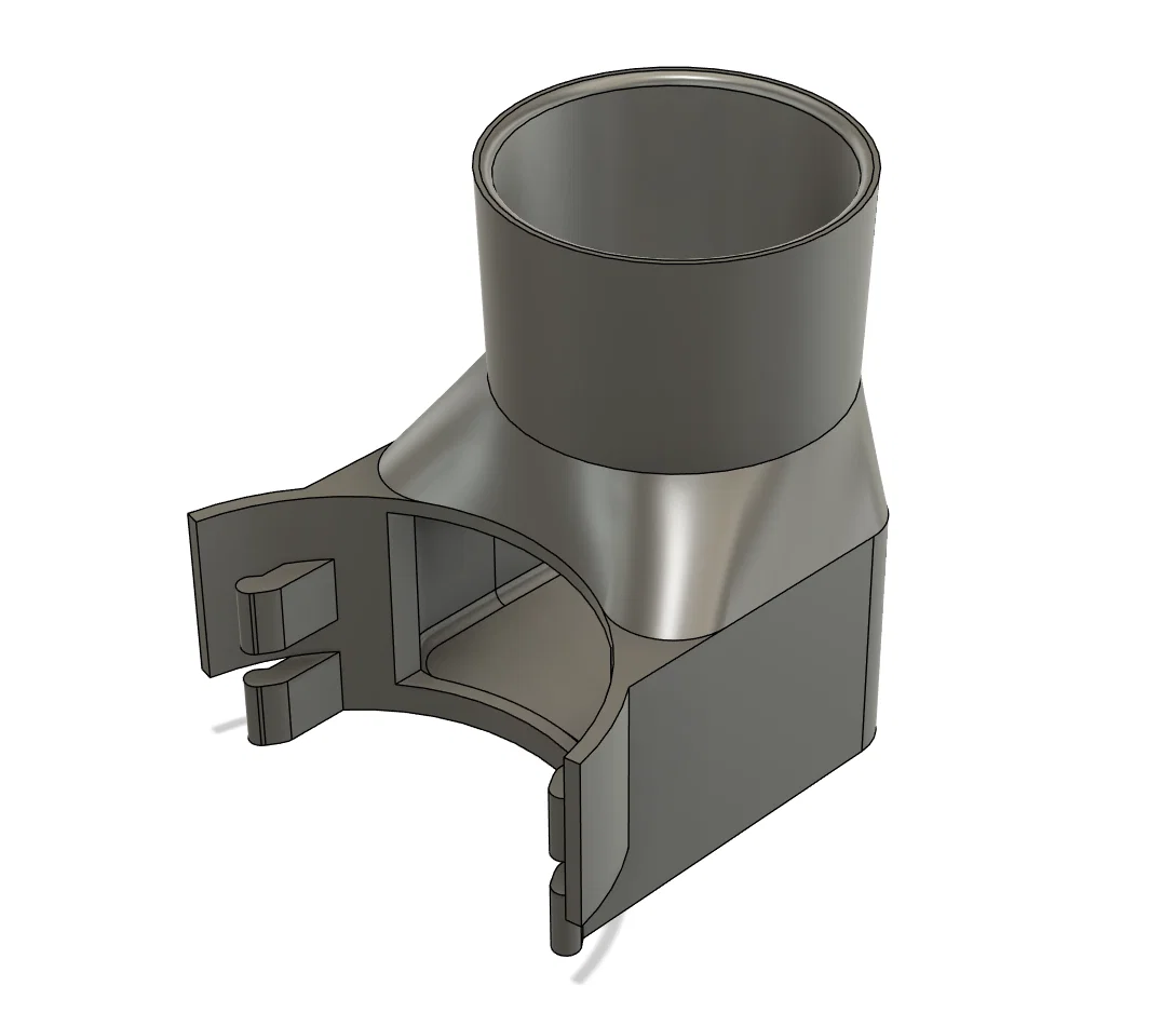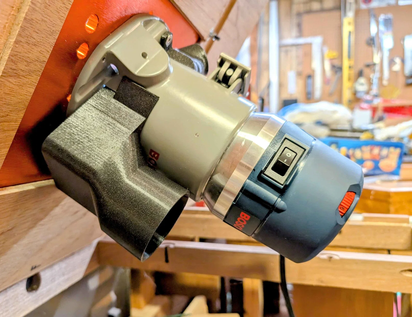 Mẫu gốc từ người dùng mattcoon trên Thingiverse là một khởi đầu rất tuyệt vời, nhưng mình muốn cải tiến mô hình f3d của họ để có hình học sạch sẽ hơn và giảm lực cản không khí. Mình đã loại bỏ các phần nhô ra bên trong vốn rất khó in nếu không có hỗ trợ (supports). Giờ đây, bạn chỉ cần dùng organic supports cho phần trên của khoang hút bụi và các ngàm lắp đặt. BẢN CẬP NHẬT V2 - 27/11/2024 Sau khi thử nghiệm, mình đã sửa đổi các ngàm lắp đặt mỏng hơn 0.5mm và đặt thấp hơn một chút. Các ngàm gốc cần phải linh hoạt hơn một chút để lắp dễ dàng mà không cần dùng nhiệt, đồng thời vị trí cũ lại hơi cao khiến máy router không thể di chuyển lên hết hành trình trên giá đỡ (khi nhìn lúc đã lắp vào bàn). Ngoài ra, mình đã bo tròn các góc chịu lực (fillet) để tránh bị nứt hoặc vỡ khi lắp đặt hay tháo rời linh kiện.