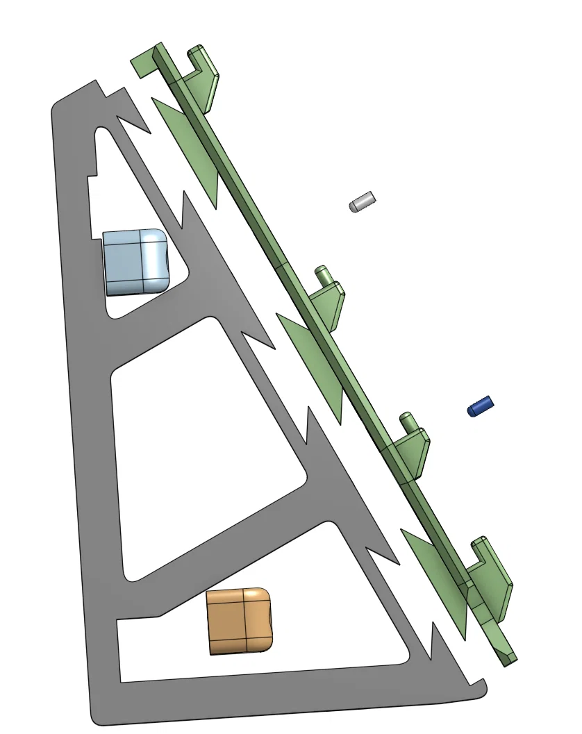 Các chốt khóa được đẩy vào vị trí sau khi đã kết nối hai mảnh chính, đóng vai trò như chốt chặn để ngăn hai mảnh dịch chuyển. Trong quá trình thử nghiệm, mình thấy chúng rất ổn định, nhưng thiết kế thêm chốt này giúp mình yên tâm hơn nhiều vì cấu trúc được cố định cơ học chắc chắn.