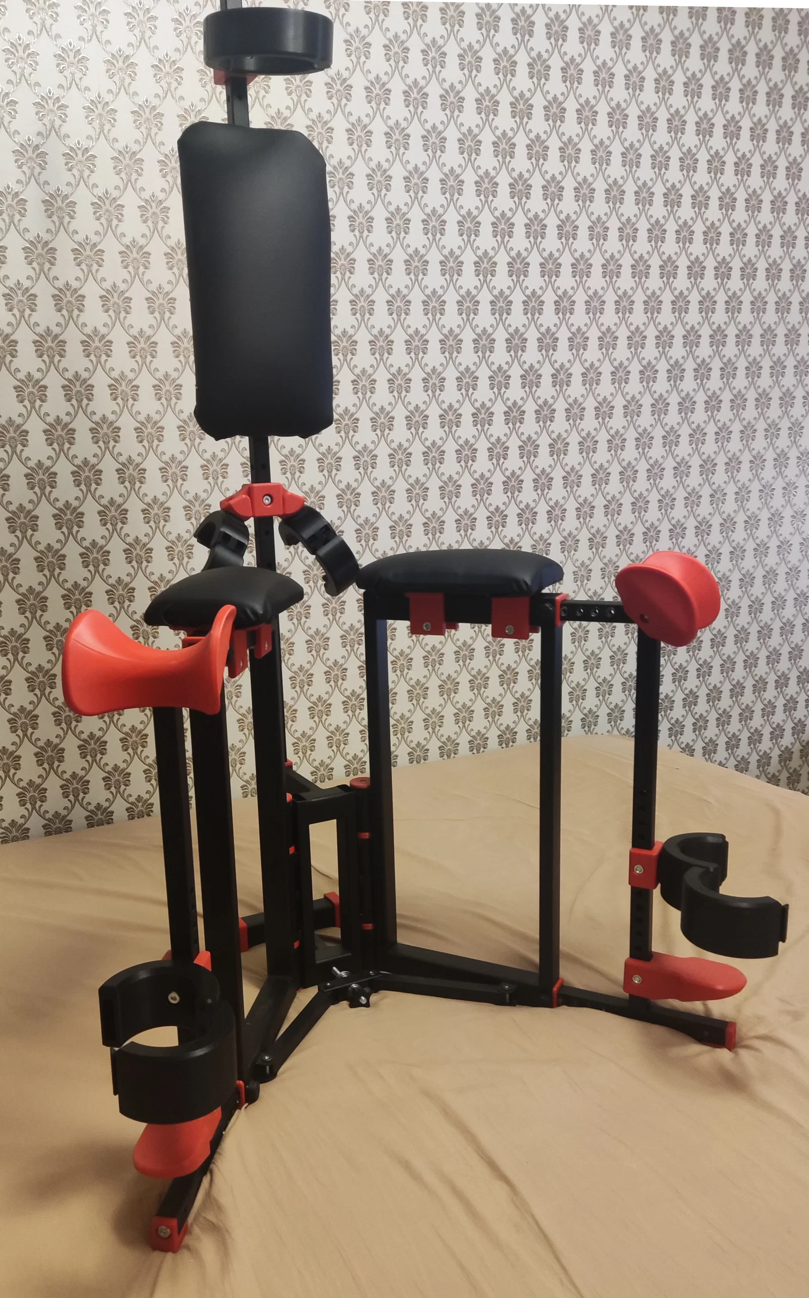 Đây là bản thiết kế cho một chiếc ghế kiềm chế có thể gấp gọn. Lưu ý rằng thiết kế này không in 3D hoàn toàn mà cần kết hợp với rất nhiều linh kiện kim loại, cũng như yêu cầu người dùng phải tự điều chỉnh lại để lắp ráp hoàn thiện.