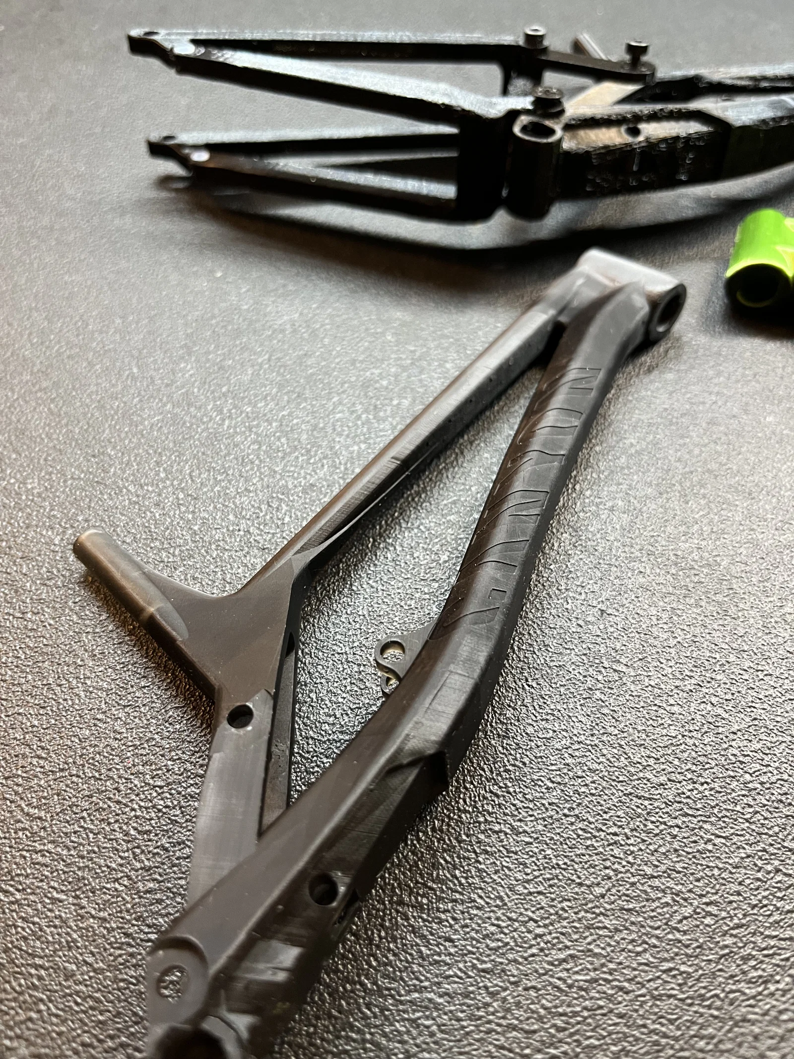 Phuộc Fox 40 cần một "lò xo" bằng nhựa TPU chuyên dụng để hoạt động ổn định, và phuộc sau Fox X2 hiện tại vẫn còn trống bên trong – mình đang tìm giải pháp để tích hợp cơ chế giảm chấn thực thụ.