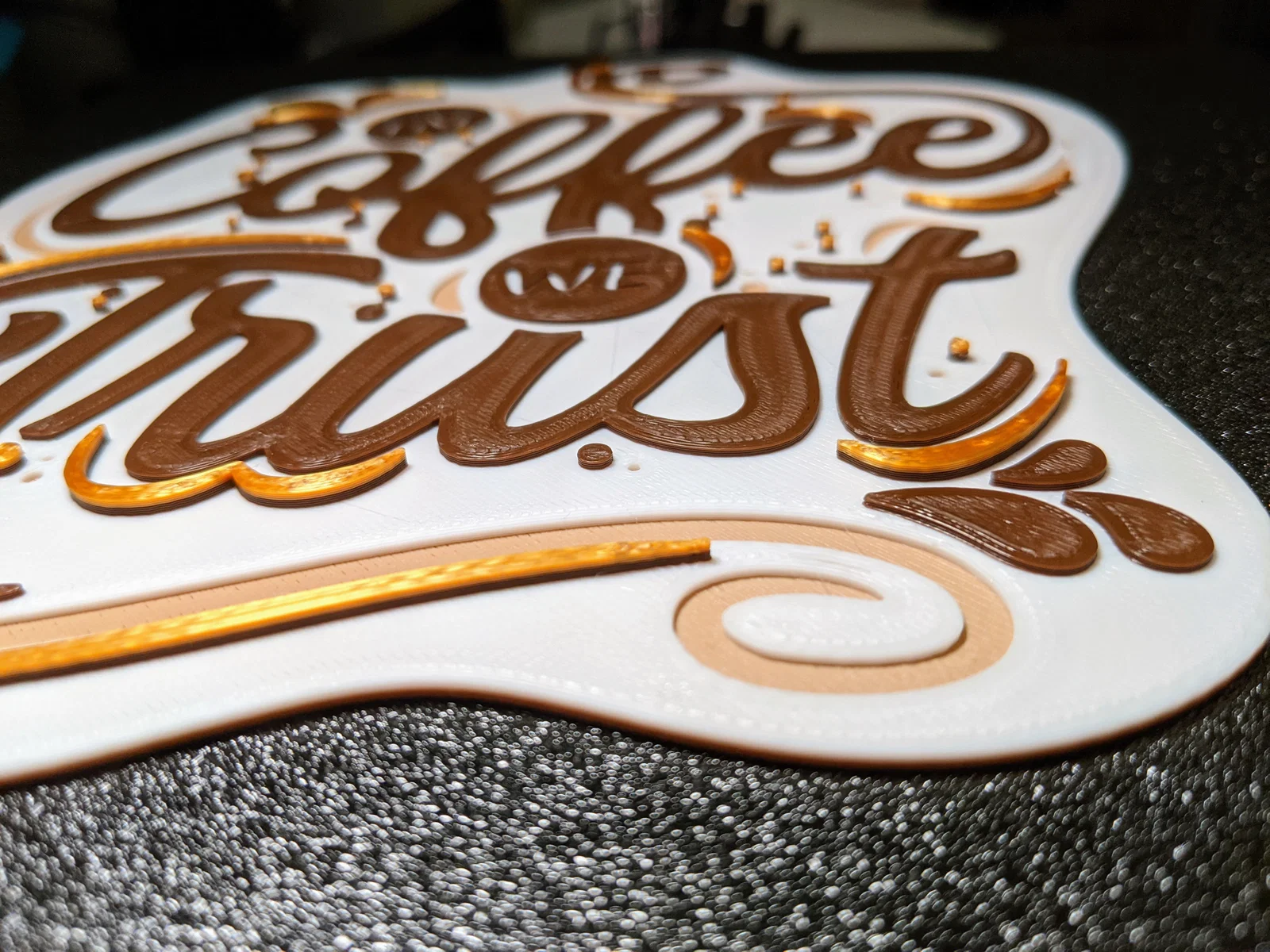 Tổng kết lại, "In Coffee We Trust" không chỉ là một món đồ decor mà còn là lời tuyên ngôn đầy hài hước và đầy cảm hứng cho những người yêu cà phê. Hãy chuẩn bị sẵn các loại filament yêu thích và bắt tay vào in ngay để làm mới không gian của mình nhé!