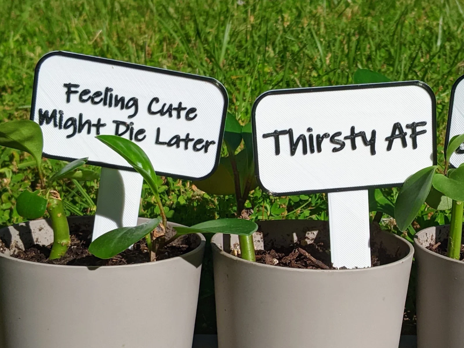 Bạn đang tìm cách làm mới góc xanh của mình? Đừng bỏ qua bộ sưu tập 20 mẫu thẻ cắm chậu cây cực kỳ hài hước và độc đáo này. Với các câu nói dí dỏm in trực tiếp trên thẻ, đây là phụ kiện trang trí hoàn hảo cho những chậu cây sen đá hoặc xương rồng của bạn. Sản phẩm được thiết kế với độ dày 2mm, dễ dàng in 3D tại nhà bằng nhựa PLA. Bạn chỉ cần thực hiện thao tác đổi màu filament đơn giản để làm nổi bật dòng chữ trên nền thẻ. Đây không chỉ là vật dụng trang trí mà còn là món quà tuyệt vời dành tặng những người yêu cây cối. Hãy thêm ngay nét cá tính cho khu vườn nhỏ của bạn với những chiếc thẻ đáng yêu này ngay hôm nay.