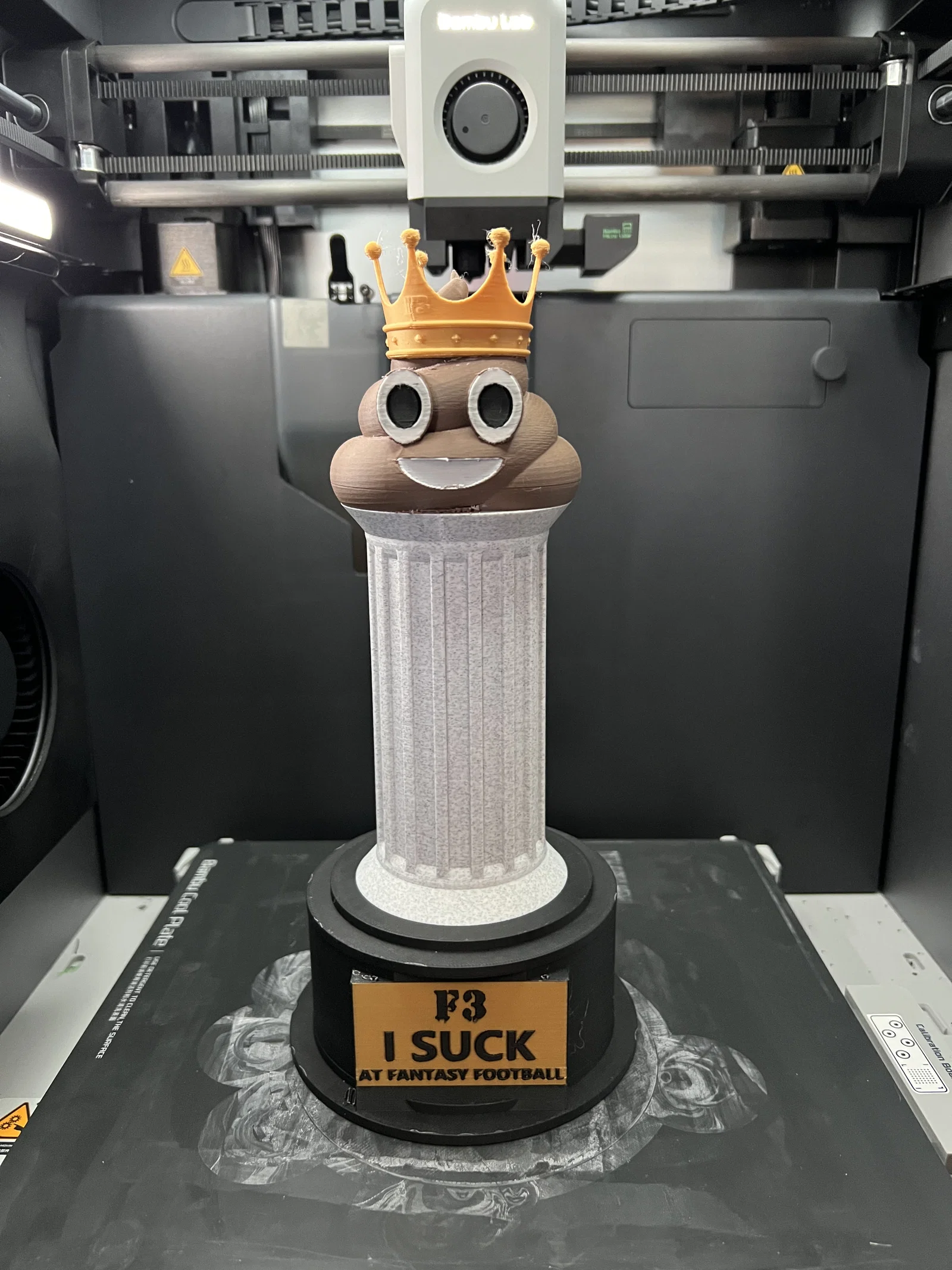 Mình đã học hỏi ý tưởng về chiếc cúp dành cho người thua cuộc trong giải fantasy football từ @adam_1550. Mình tìm thấy các mẫu tương tự và đã thiết kế lại theo ý thích của mình để phù hợp với việc in nhiều màu. Ngoài ra, mình cũng tách riêng phần mô hình chữ ra để bạn có thể dễ dàng thay đổi vị trí, phòng trường hợp bạn muốn thêm năm hoặc logo vào thiết kế này.