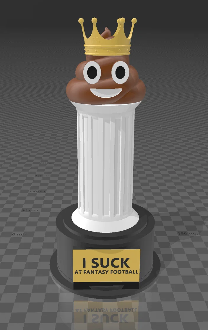 Một món quà thú vị để nhắc nhở những người về chót trong giải đấu fantasy football của bạn. Mô hình đã được tối ưu hóa để in nhiều màu và cho phép tùy chỉnh phần chữ để thêm logo hoặc năm thi đấu.