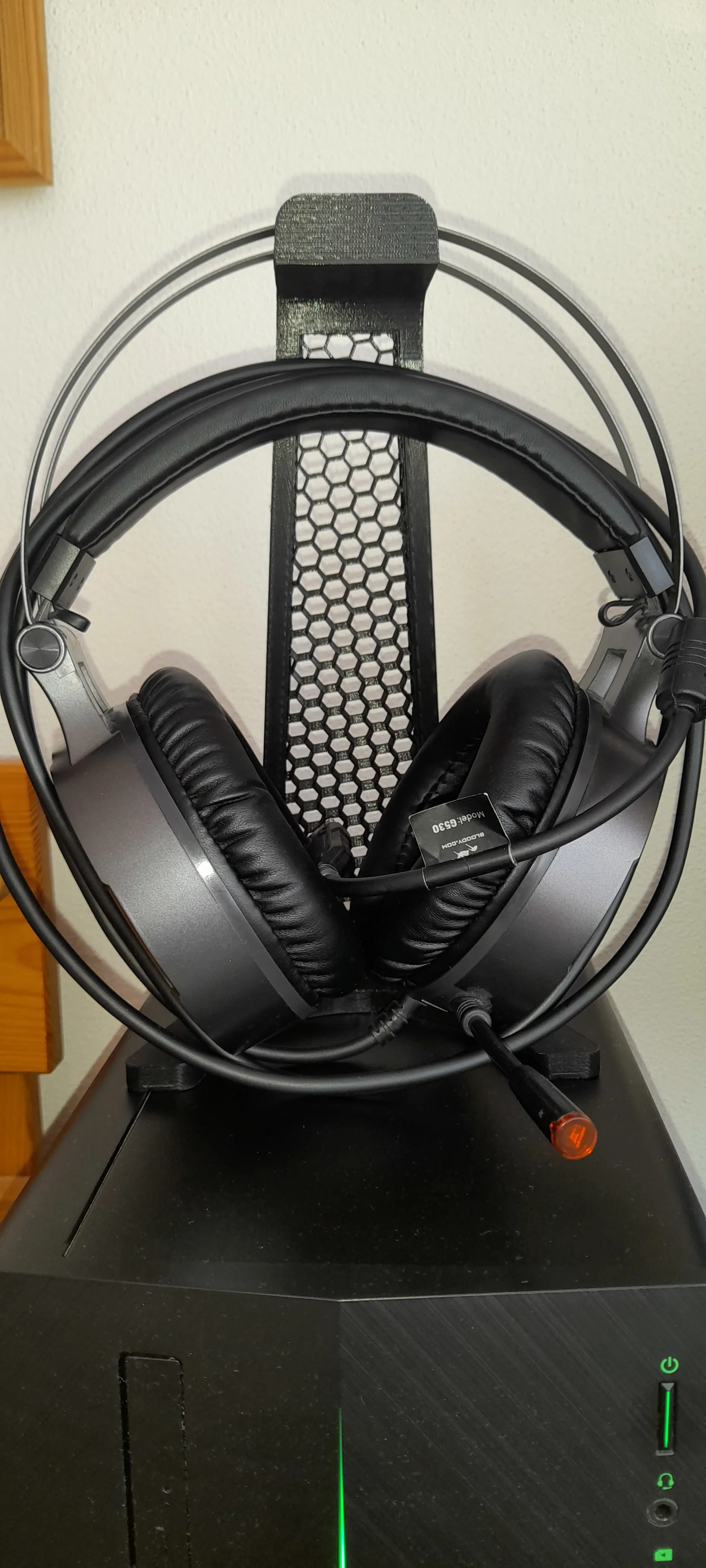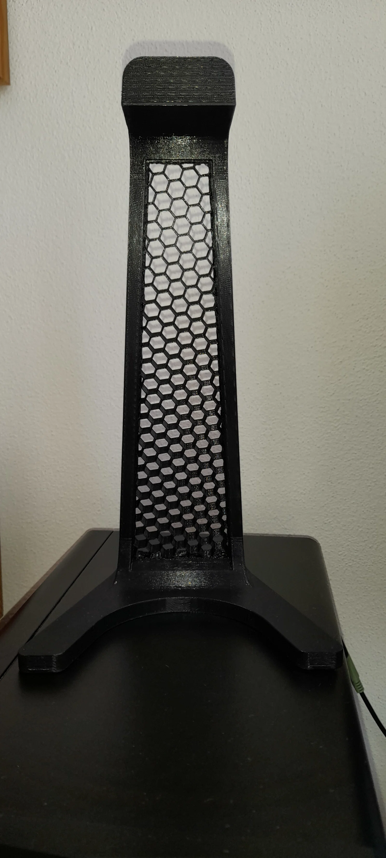 Được thiết kế với chiều cao khoảng 22cm, giá treo này phù hợp với hầu hết các loại tai nghe chụp tai (over-ear) phổ biến hiện nay. Điểm nhấn của mô hình là phần thân được gia công với họa tiết tổ ong (honeycomb) vừa đảm bảo độ cứng cáp, vừa mang lại vẻ ngoài thẩm mỹ độc đáo. Bạn có thể dễ dàng đặt nó trên mặt bàn hoặc ngay trên nóc thùng máy tính để tiết kiệm diện tích.