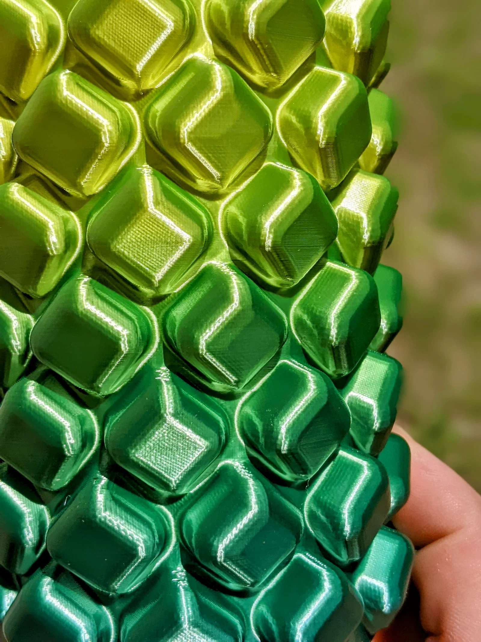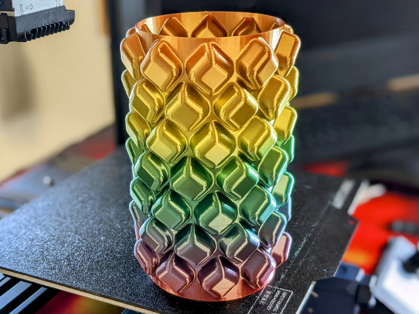Nhìn những bản in ở chế độ vase mode này dần hiện ra thiệt là đã mắt! Chúng không chỉ đẹp mà còn cực kỳ hữu ích để làm hộp đựng đồ đạc nữa. Mọi người lưu ý là nếu dùng mấy dòng máy in tầm trung, mình nên điều chỉnh tốc độ thành vách (perimeter wall speed) chậm lại để lớp hoàn thiện bên ngoài trông mượt mà và bóng bẩy hơn nha. Cứ thong thả in chậm lại một chút để có thành phẩm ưng ý nhất.