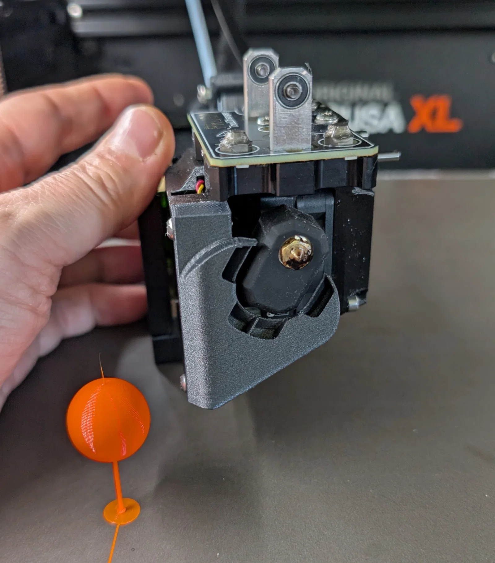của mình và ống dẫn khí zin của Prusa thường cho ra hình vòm bị lệch ở bên phải. Sau nhiều lần chỉnh sửa, phiên bản mới này cho kết quả in khá cân xứng (như hình mẫu màu cam).