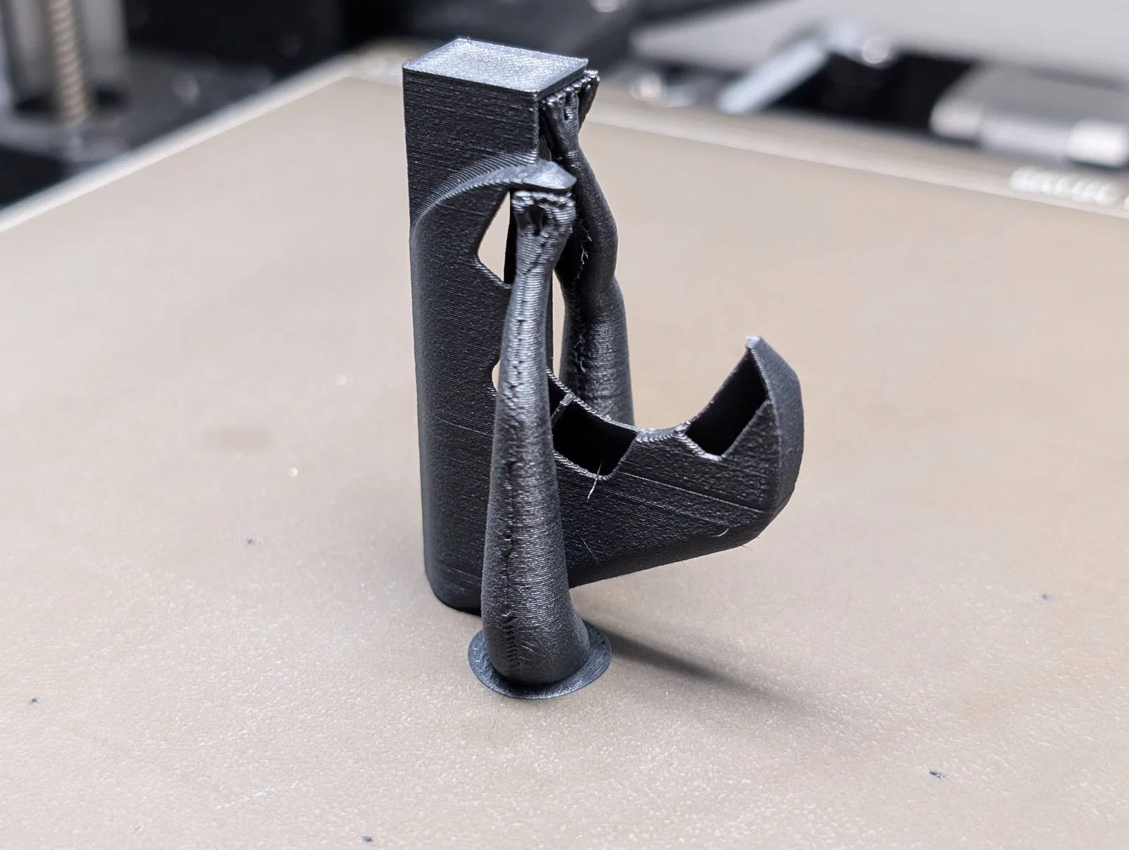 Mình khuyến khích bạn hãy thử in các mẫu kiểm tra khả năng chịu tải để thấy được sự vượt trội so với ống dẫn khí mặc định. Hiệu ứng luồng khí tập trung theo hướng của ống dẫn zin gây ra hiện tượng cong vênh trên mẫu in màu xám ở ảnh trên. Tuy nhiên, hãy nhớ rằng đặc tính đó đôi khi vẫn có lợi cho một số hình dạng in đặc thù.
